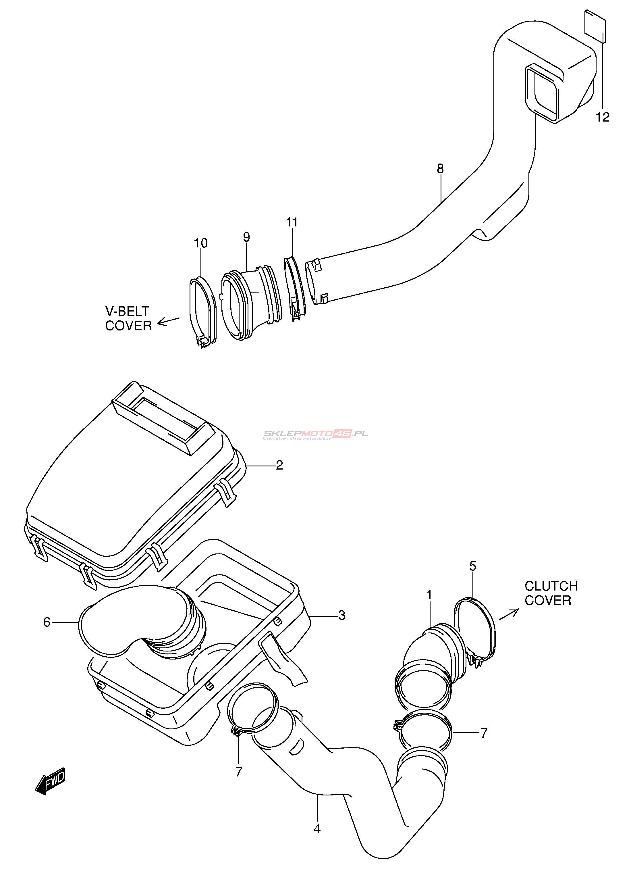 Wszystkie części widoczne na fiszkach to oryginalne części OEM Suzuki.