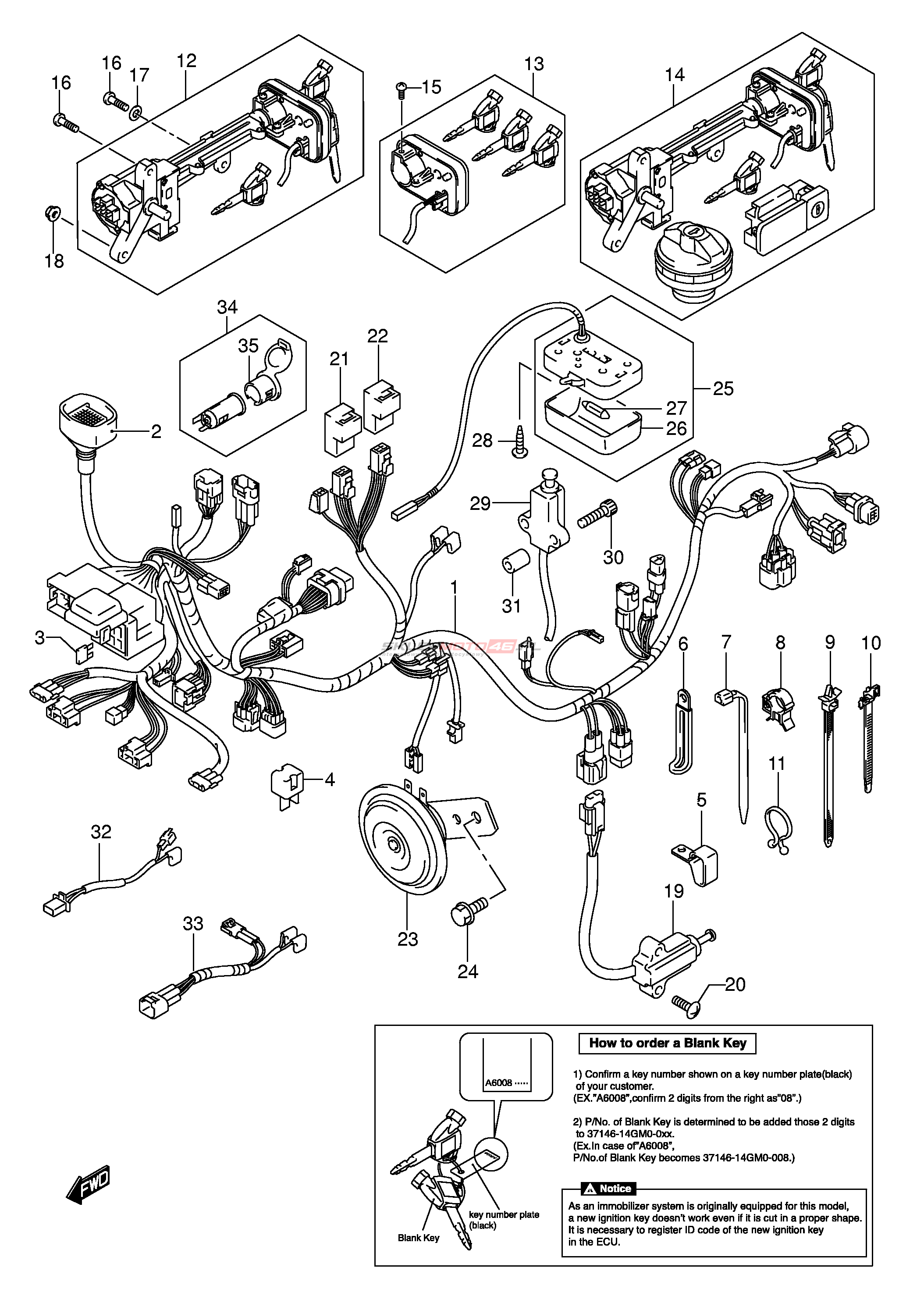 Wszystkie części widoczne na fiszkach to oryginalne części OEM Suzuki. Możesz złożyć zamówienie telefonicznie, dzwoniąc pod numer +48 512-024-444, lub poprzez nasz sklep internetowy. Dostępność wybranych części zostanie automatycznie sprawdzona po dodaniu ich do koszyka.