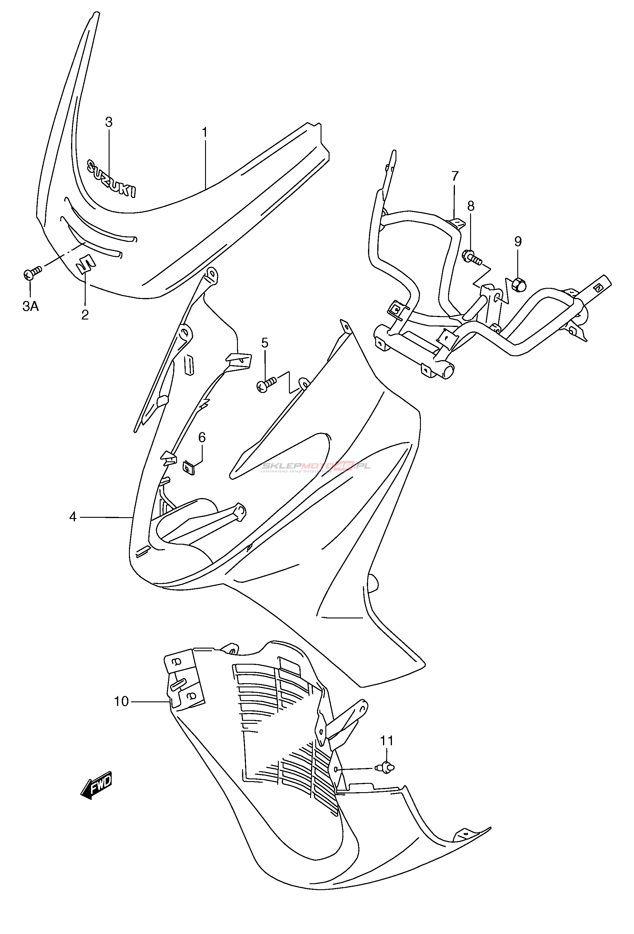 Wszystkie części widoczne na fiszkach to oryginalne części OEM Suzuki.