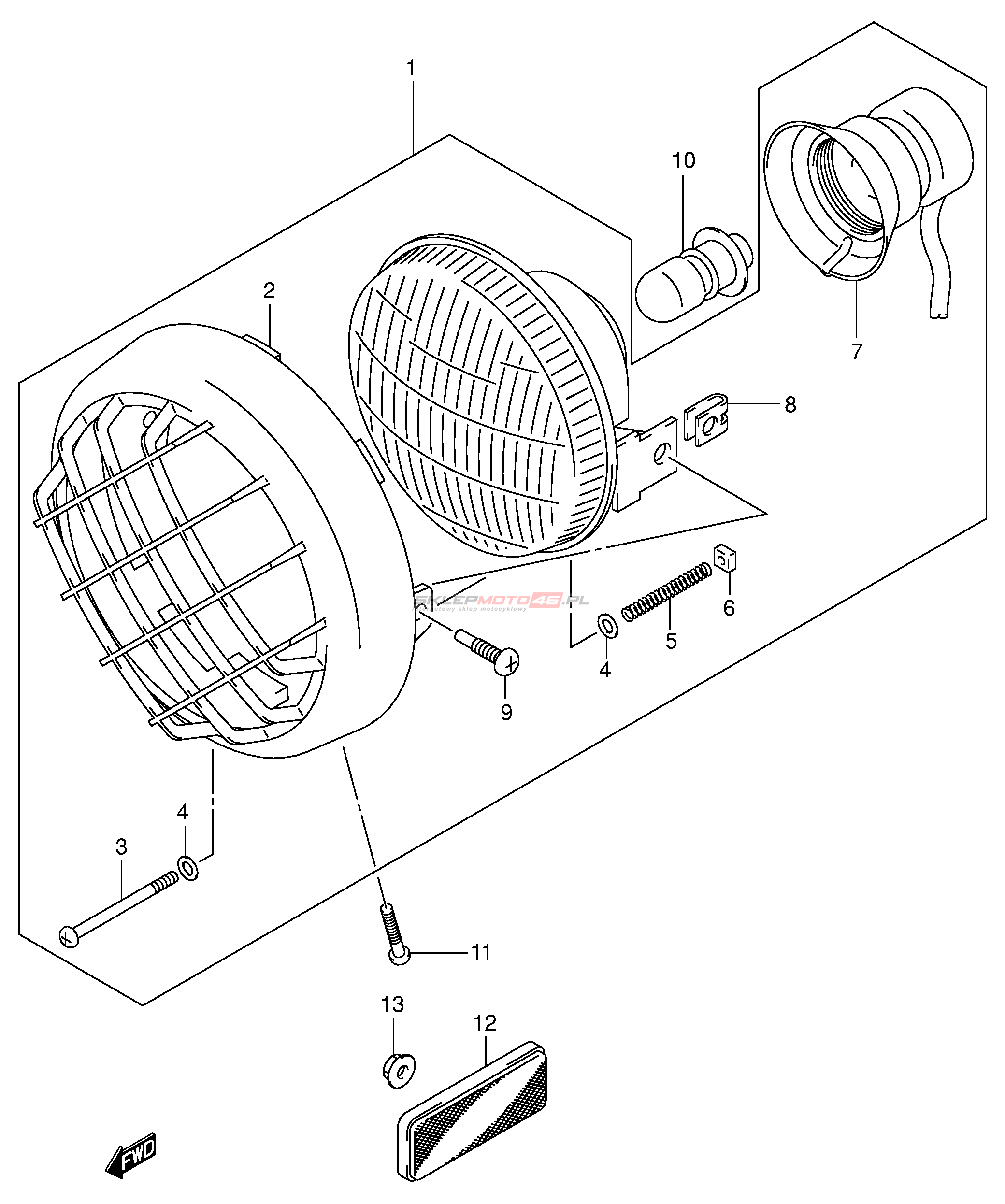 Wszystkie części widoczne na fiszkach to oryginalne części OEM Suzuki.
