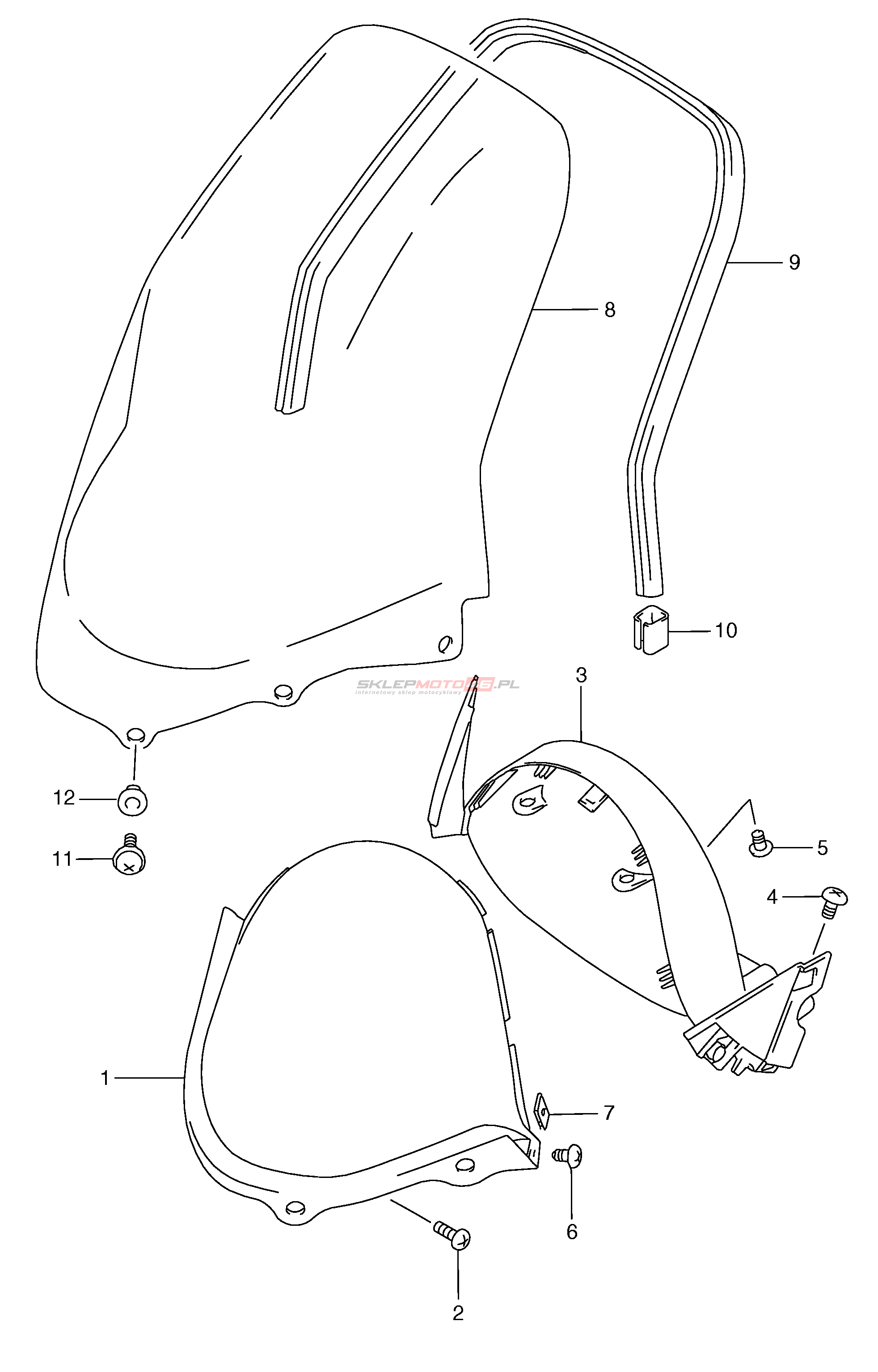 Wszystkie części widoczne na fiszkach to oryginalne części OEM Suzuki.