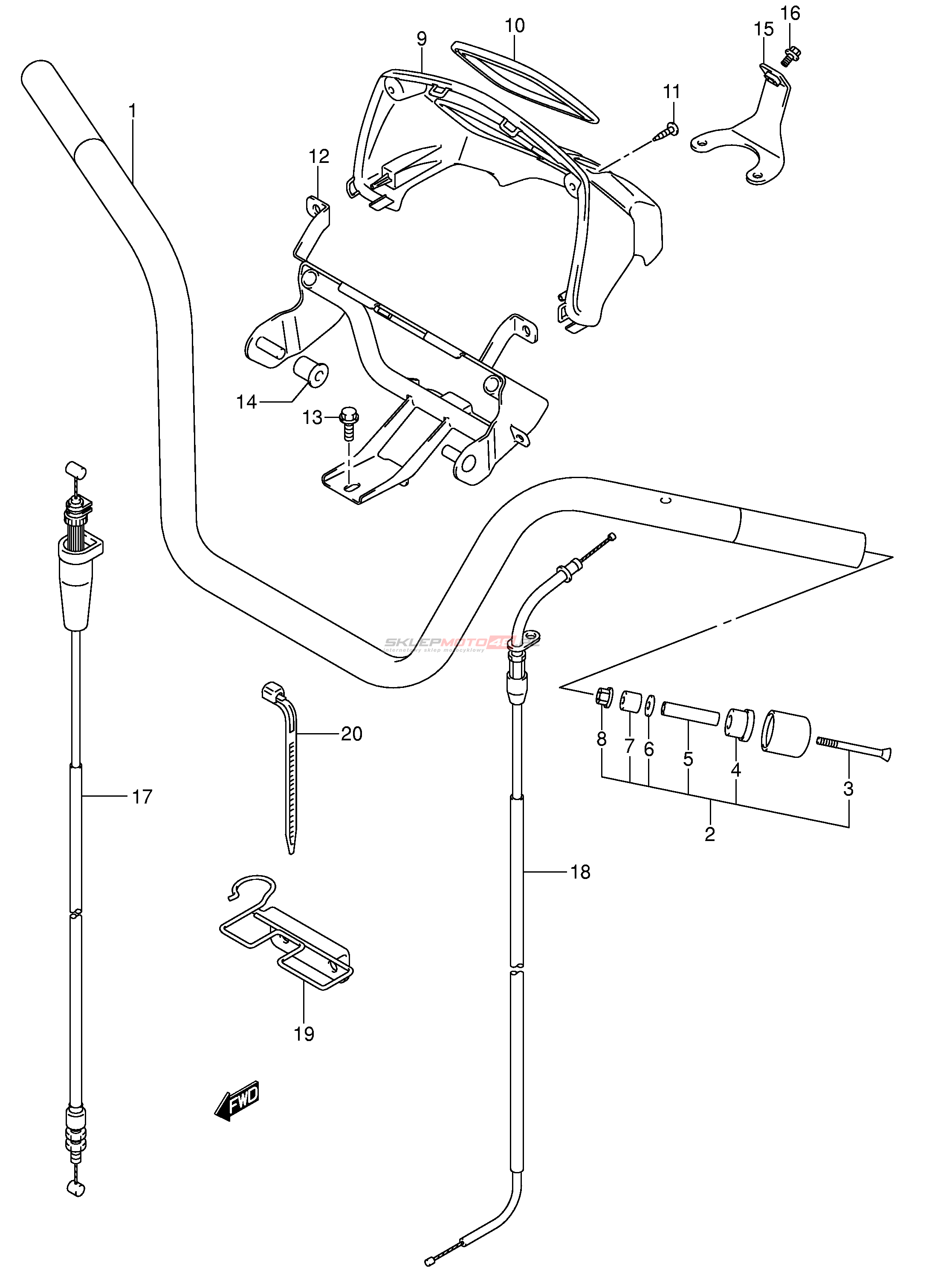 Wszystkie części widoczne na fiszkach to oryginalne części OEM Suzuki.