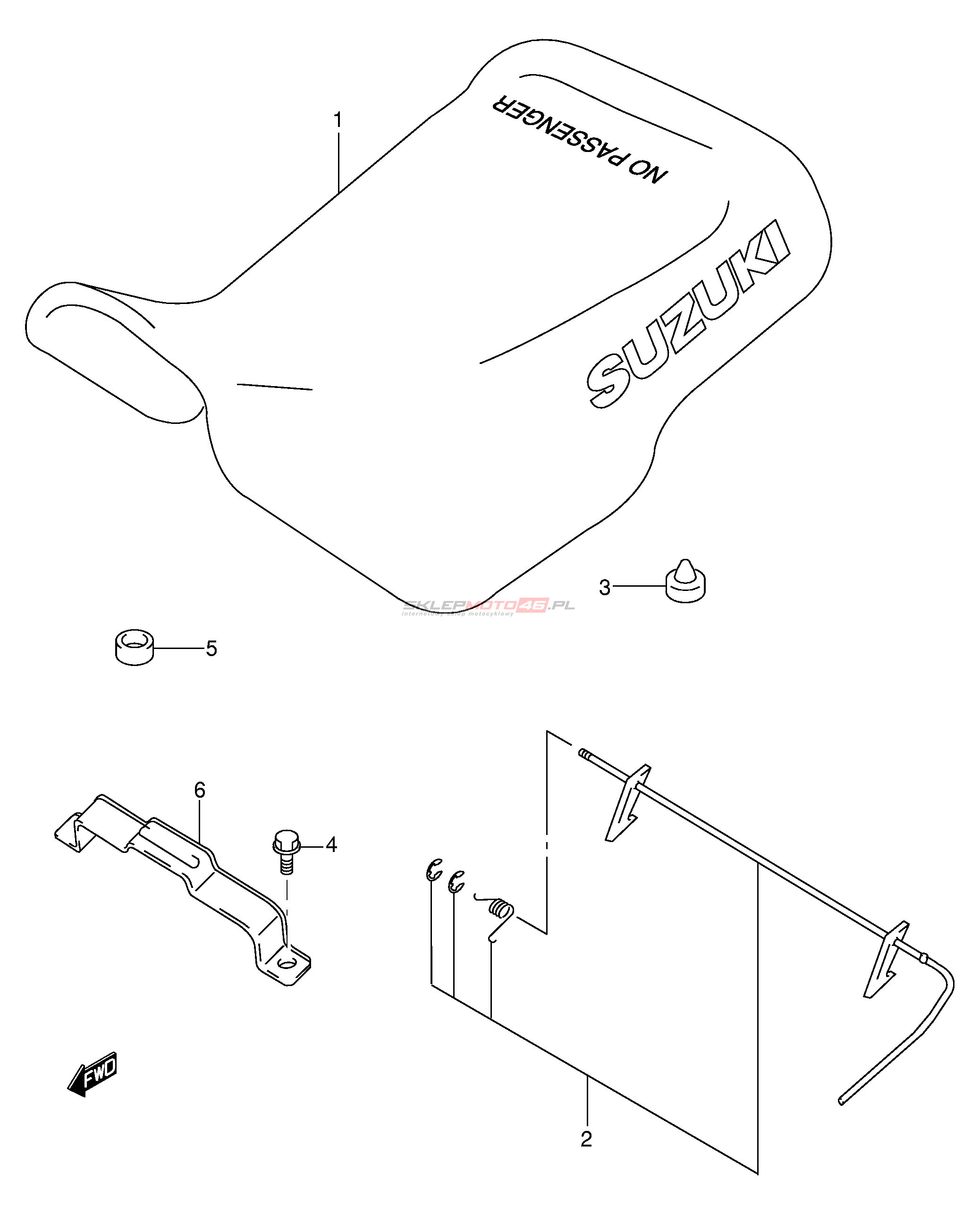 Wszystkie części widoczne na fiszkach to oryginalne części OEM Suzuki.