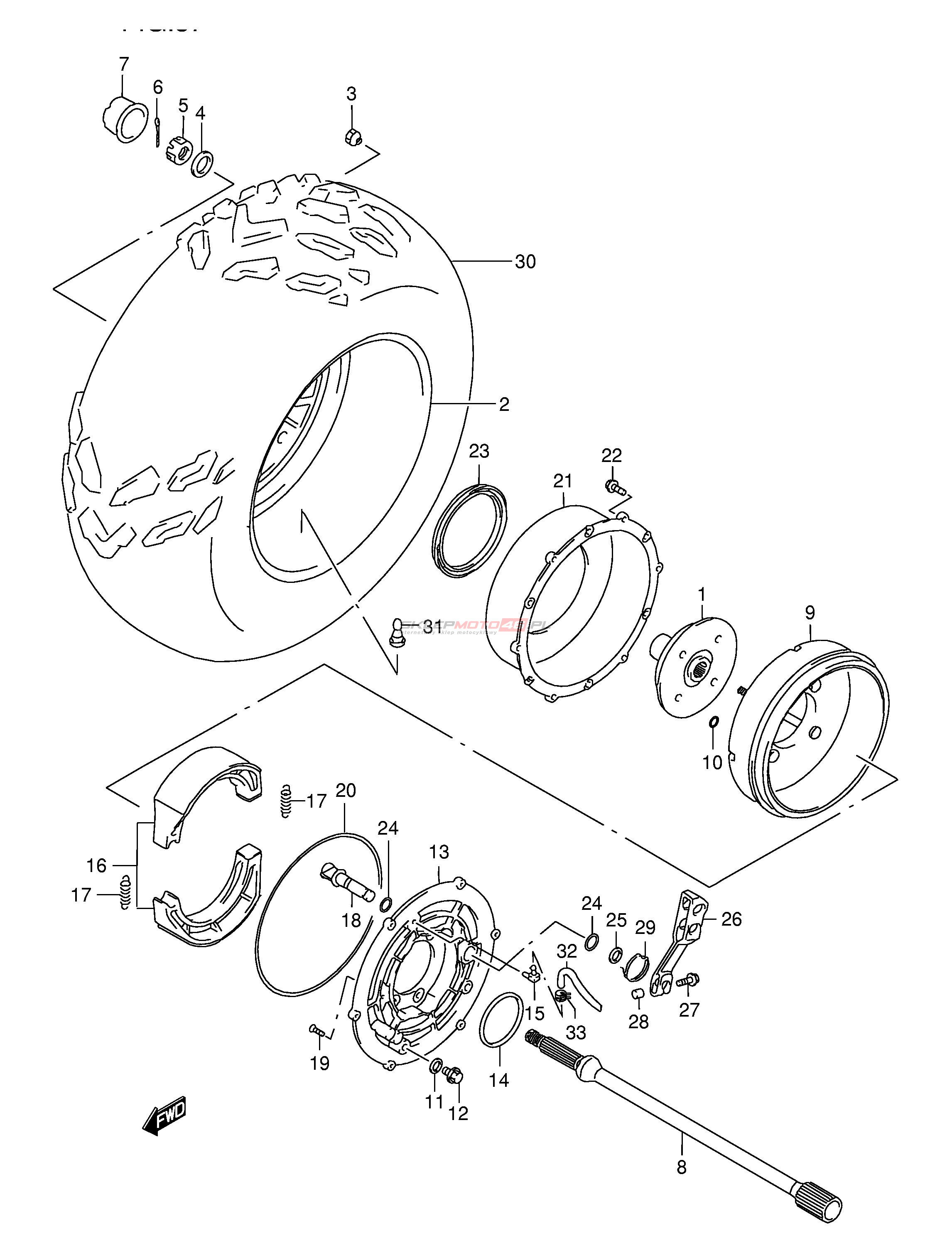 Wszystkie części widoczne na fiszkach to oryginalne części OEM Suzuki.