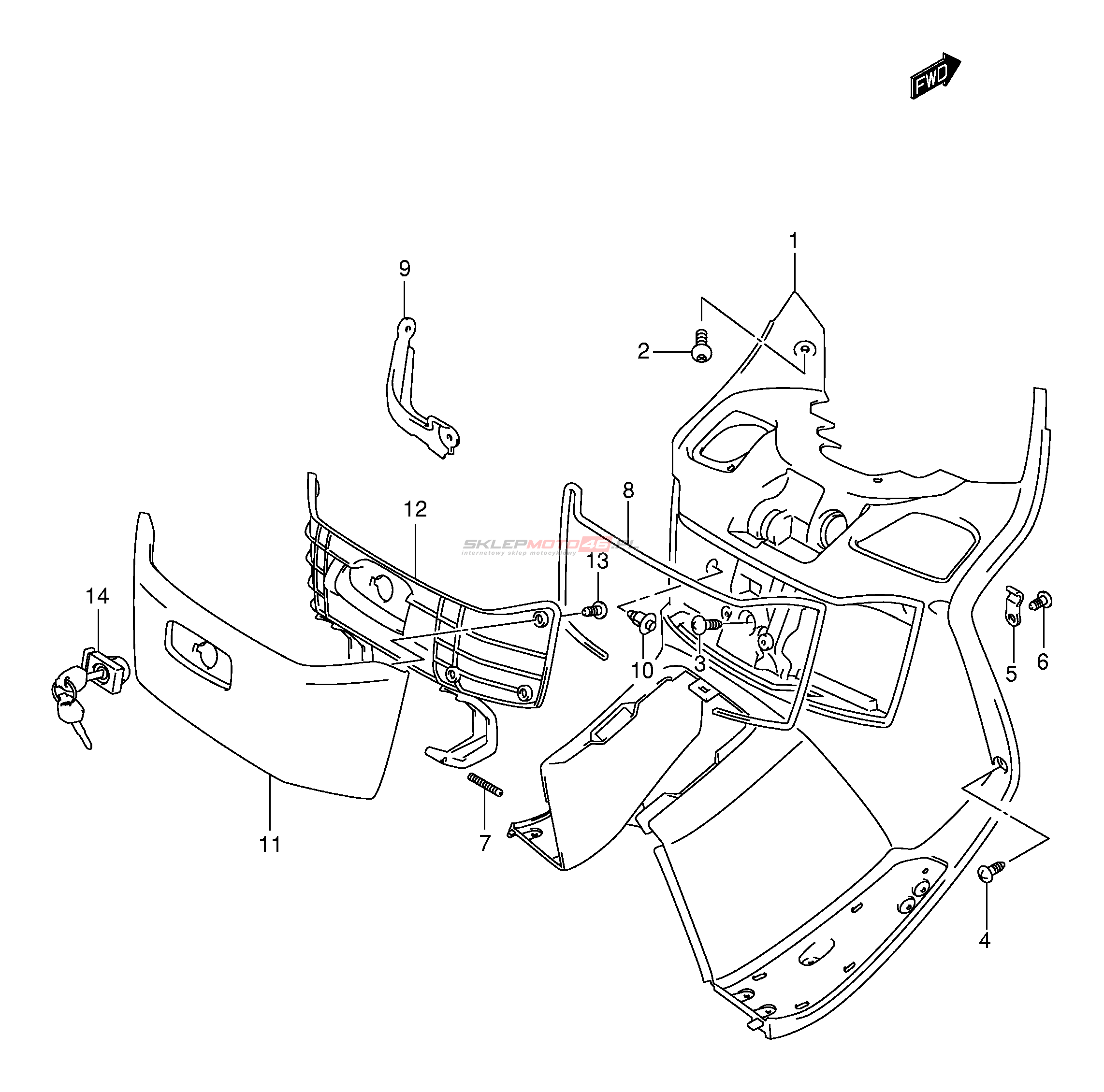 Wszystkie części widoczne na fiszkach to oryginalne części OEM Suzuki.