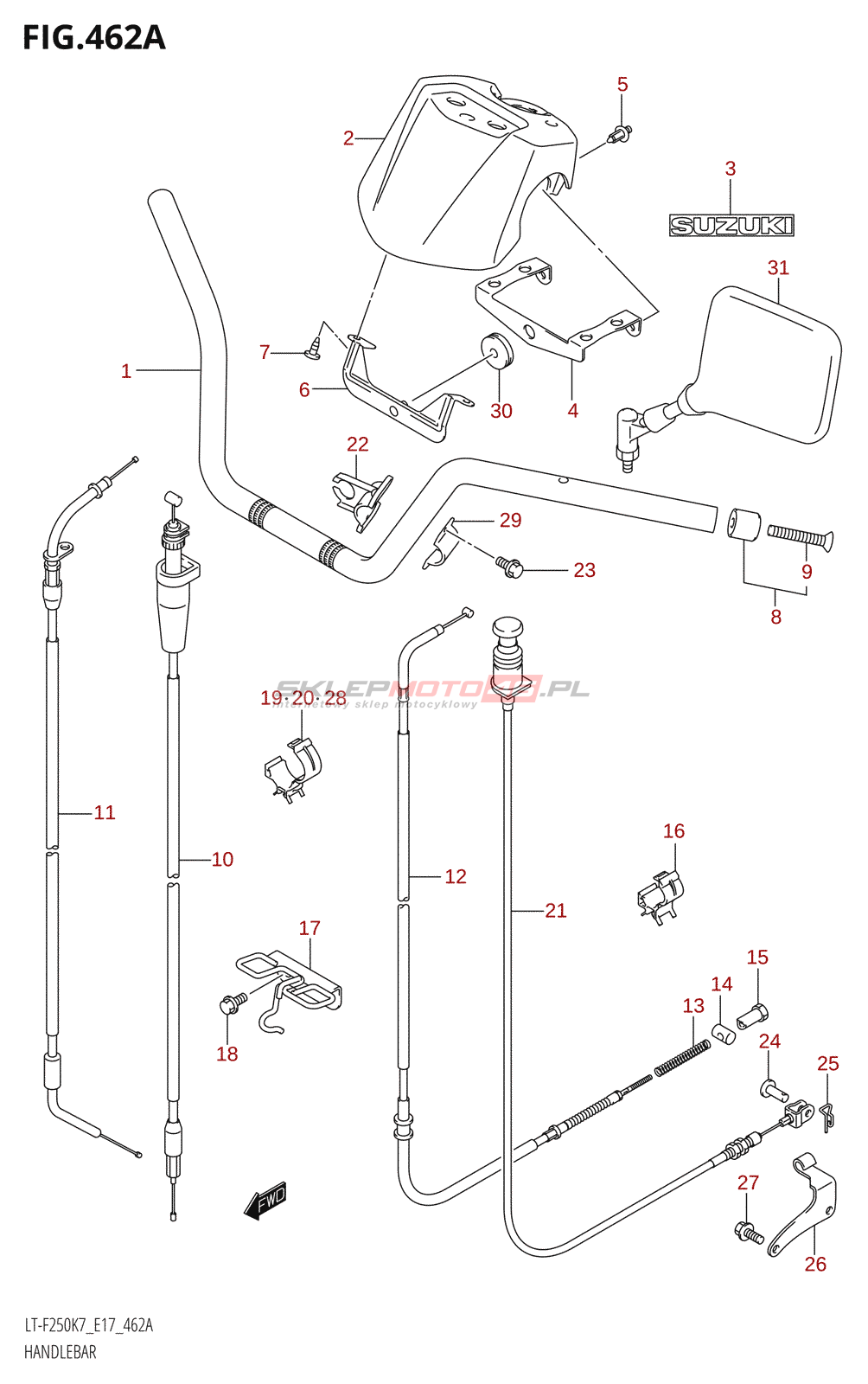 Wszystkie części widoczne na fiszkach to oryginalne części OEM Suzuki.