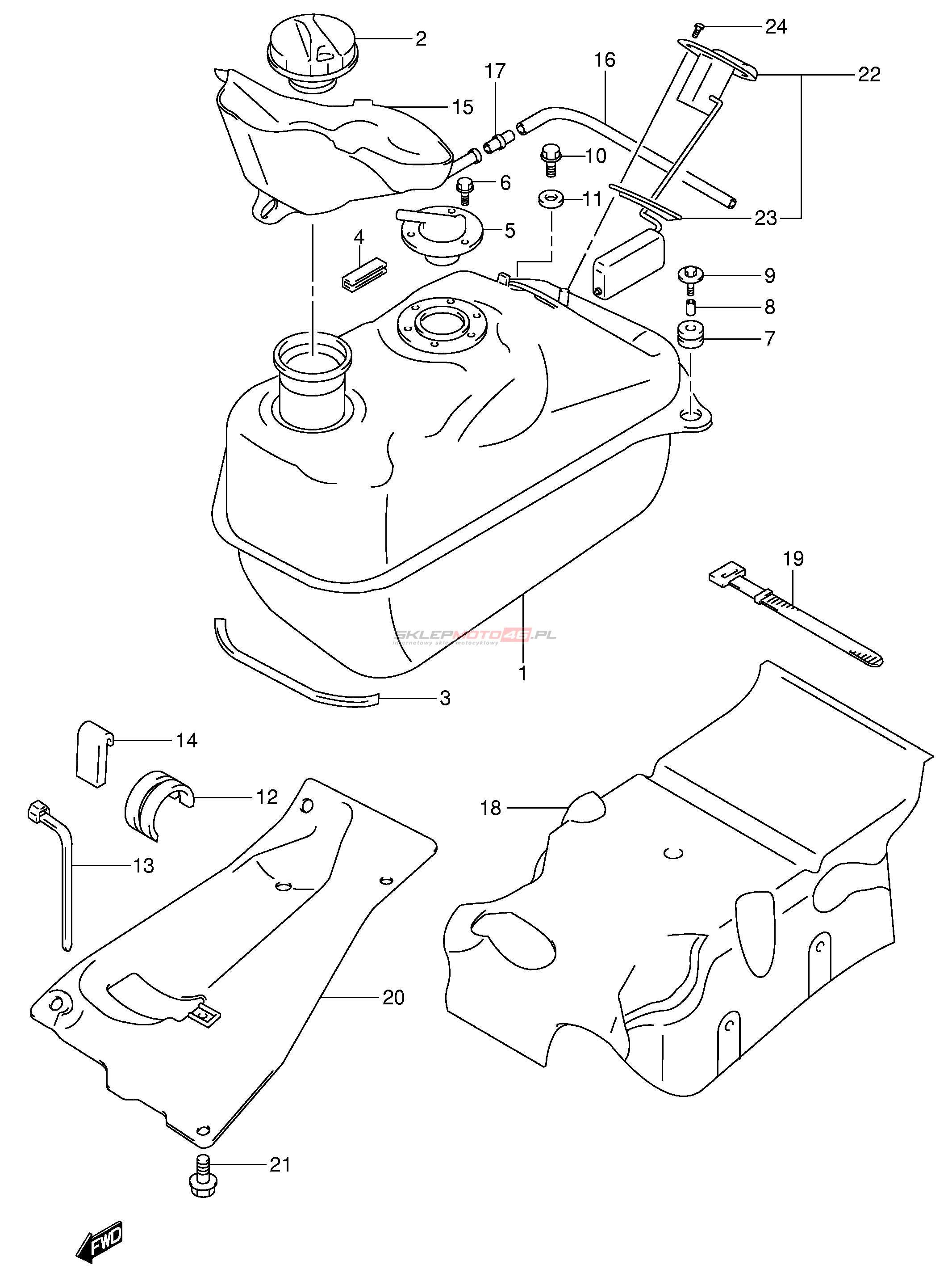 Wszystkie części widoczne na fiszkach to oryginalne części OEM Suzuki.