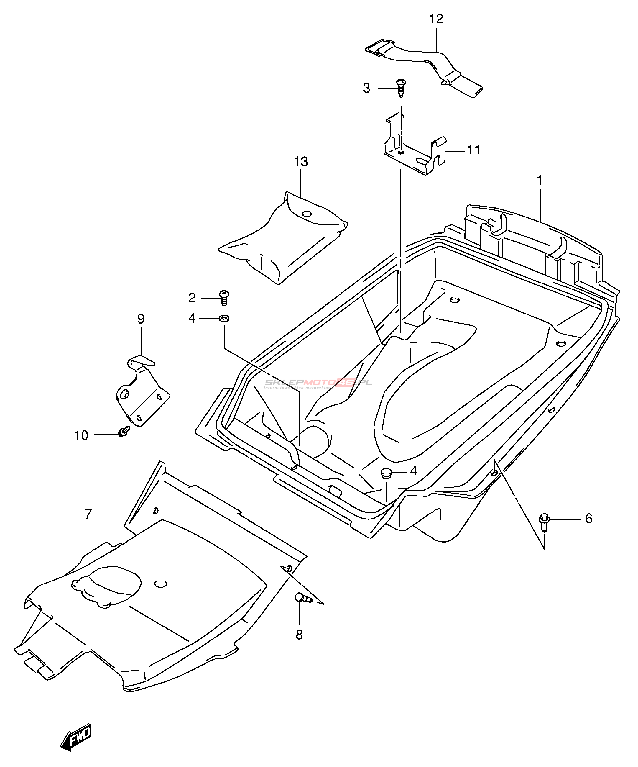Wszystkie części widoczne na fiszkach to oryginalne części OEM Suzuki.