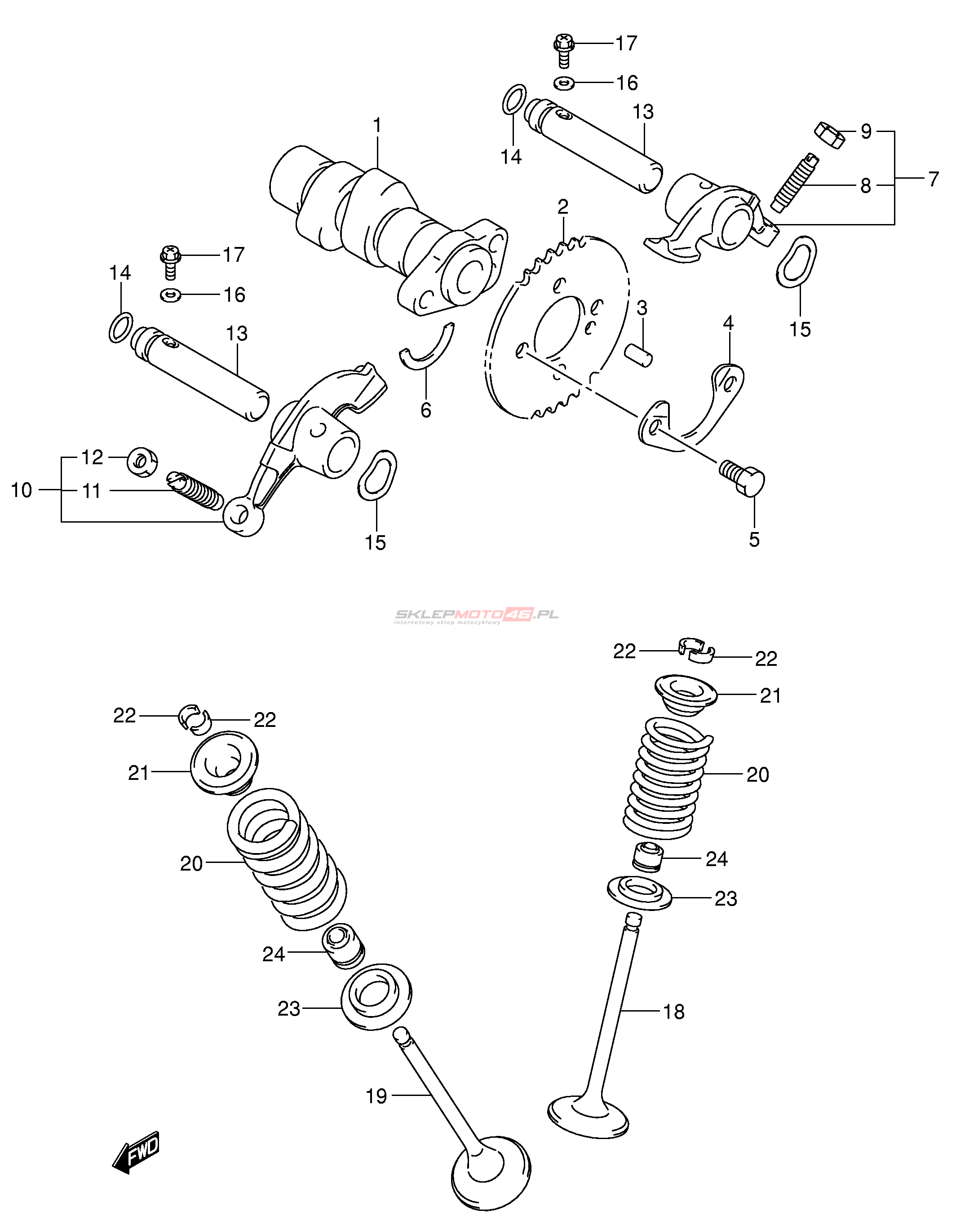 Wszystkie części widoczne na fiszkach to oryginalne części OEM Suzuki.