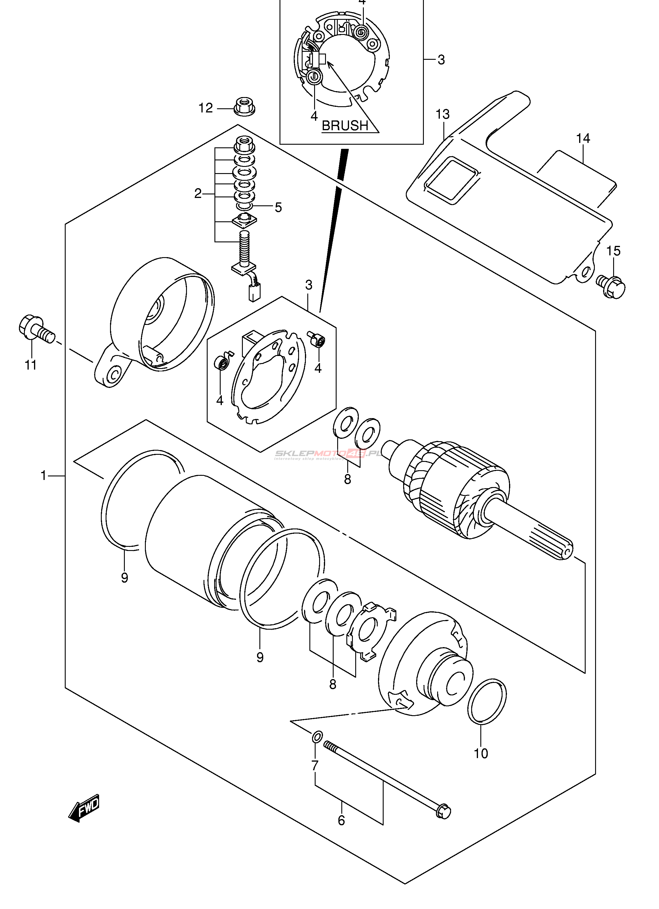 Wszystkie części widoczne na fiszkach to oryginalne części OEM Suzuki.