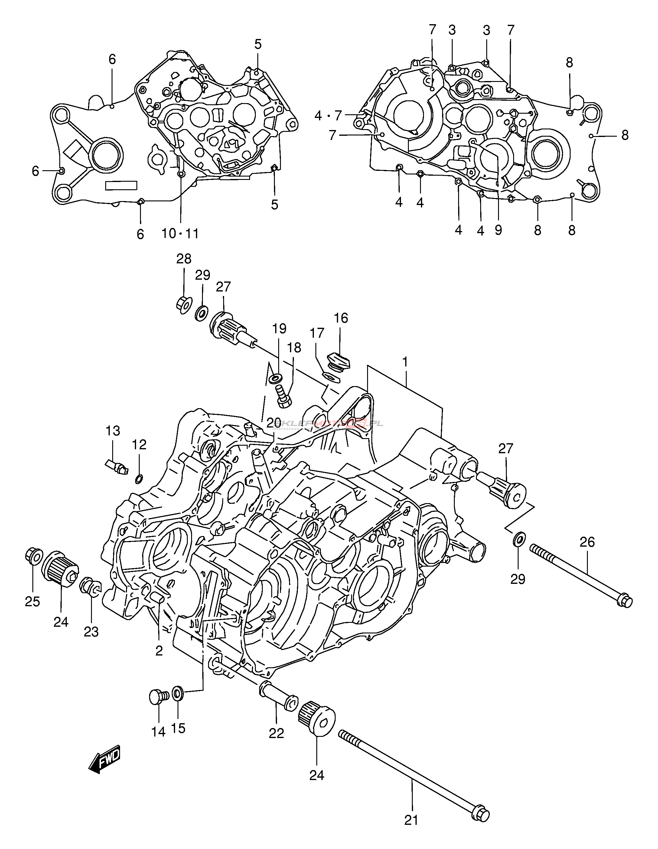 Wszystkie części widoczne na fiszkach to oryginalne części OEM Suzuki.
