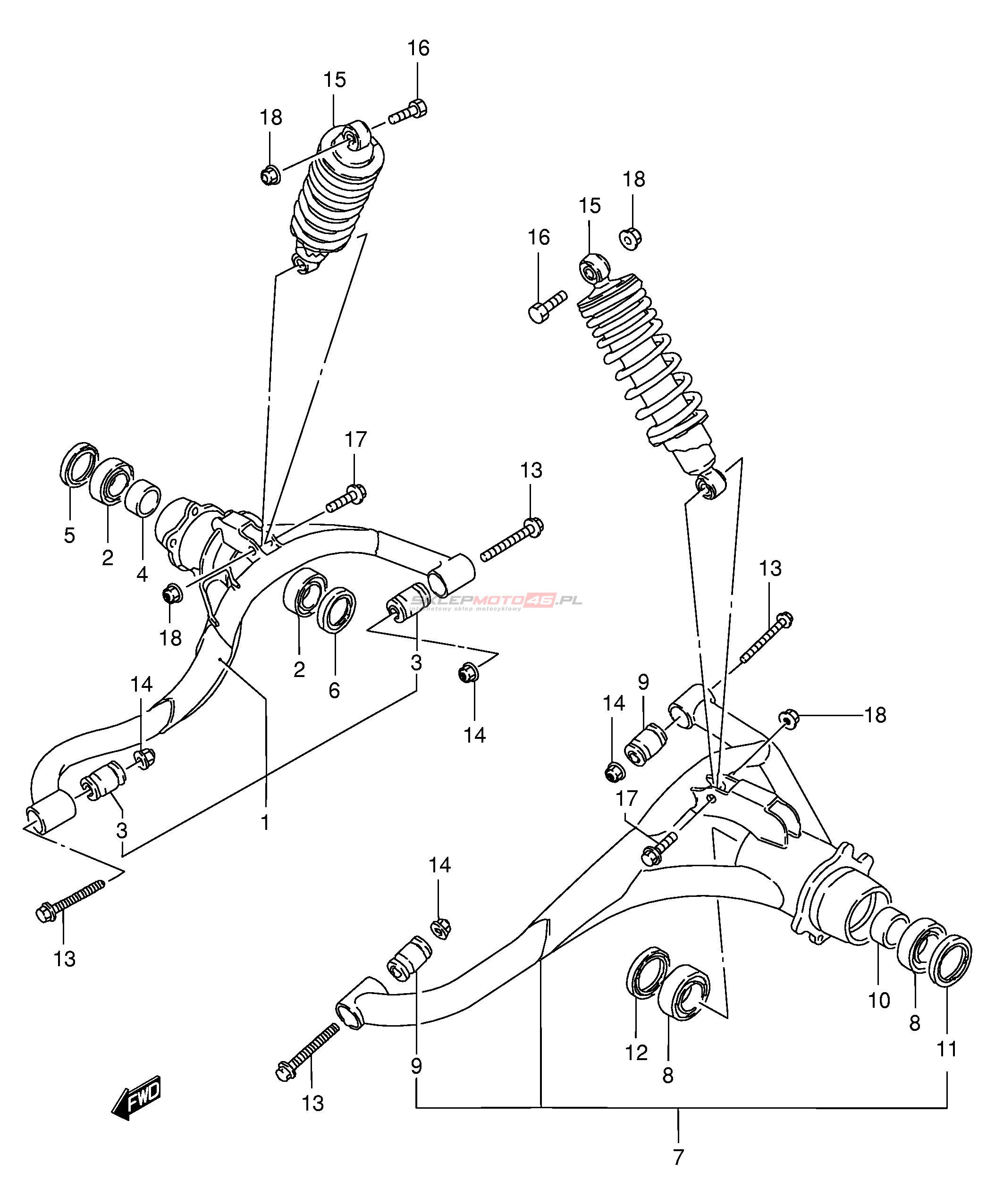 Wszystkie części widoczne na fiszkach to oryginalne części OEM Suzuki.