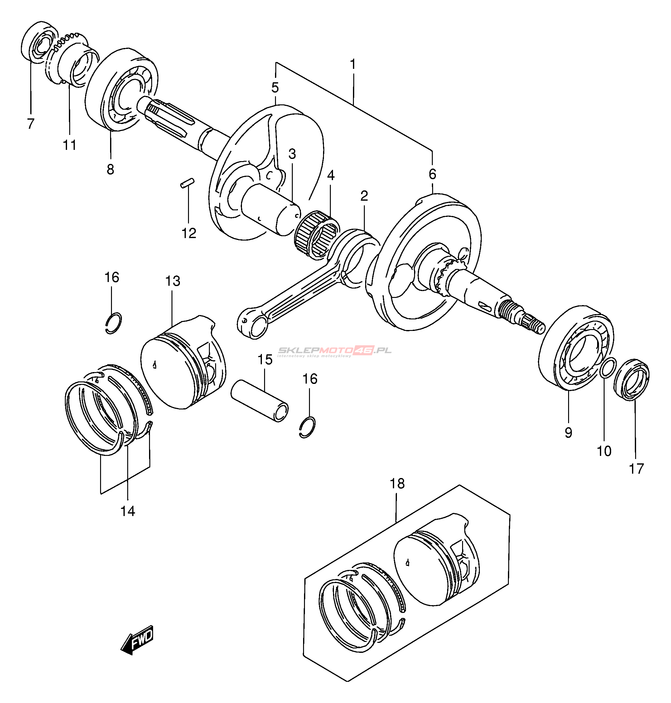 Wszystkie części widoczne na fiszkach to oryginalne części OEM Suzuki.