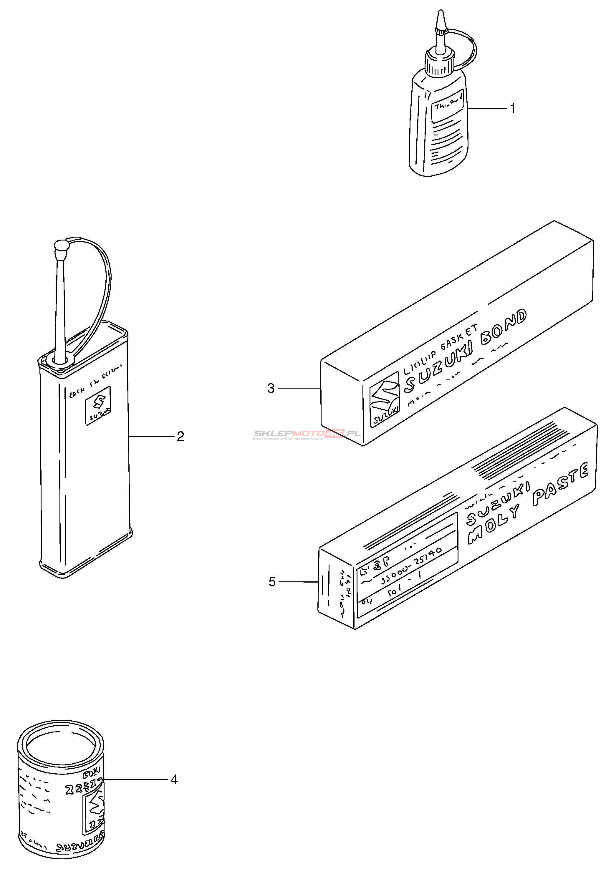 Wszystkie części widoczne na fiszkach to oryginalne części OEM Suzuki.