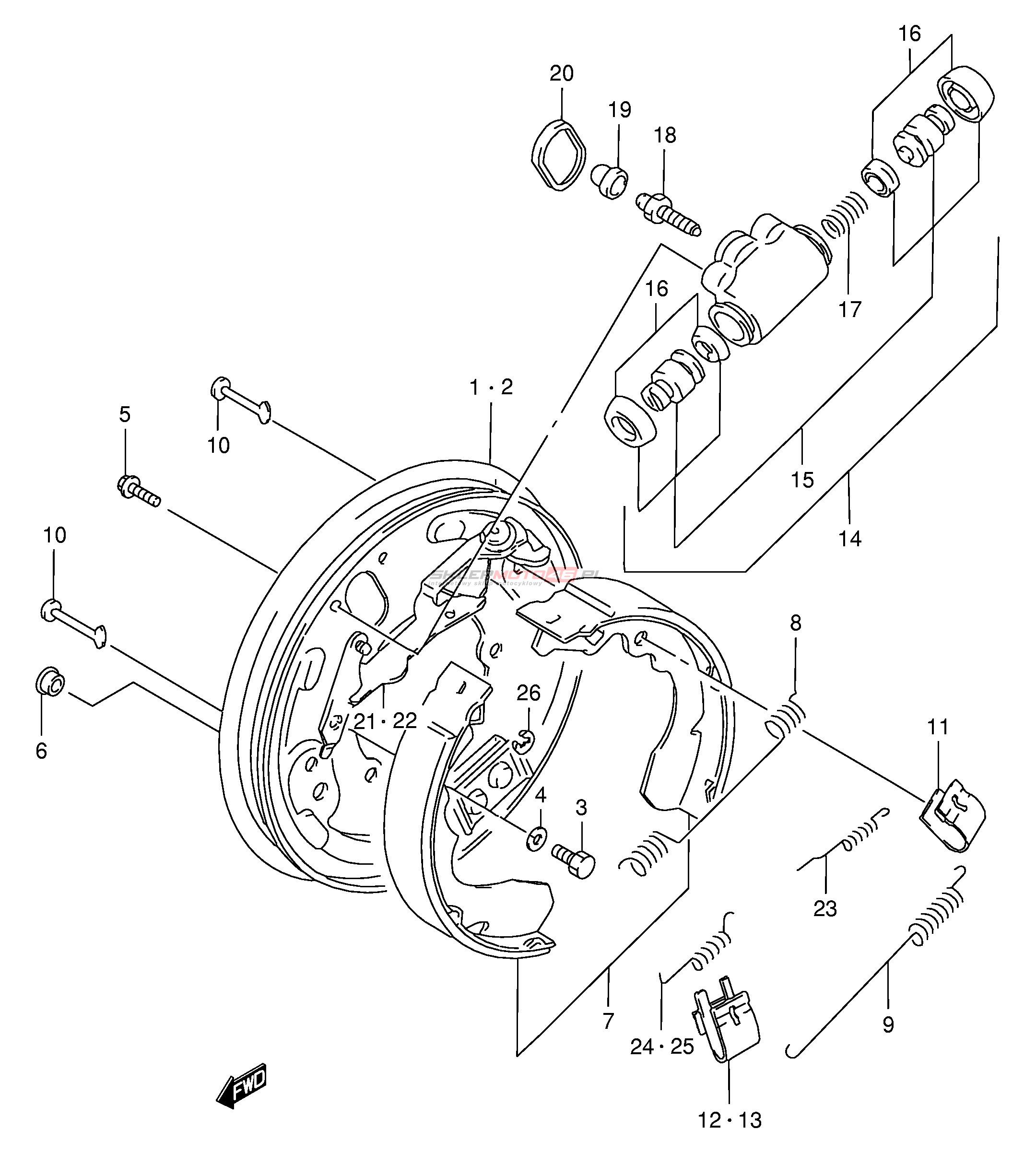 Wszystkie części widoczne na fiszkach to oryginalne części OEM Suzuki.