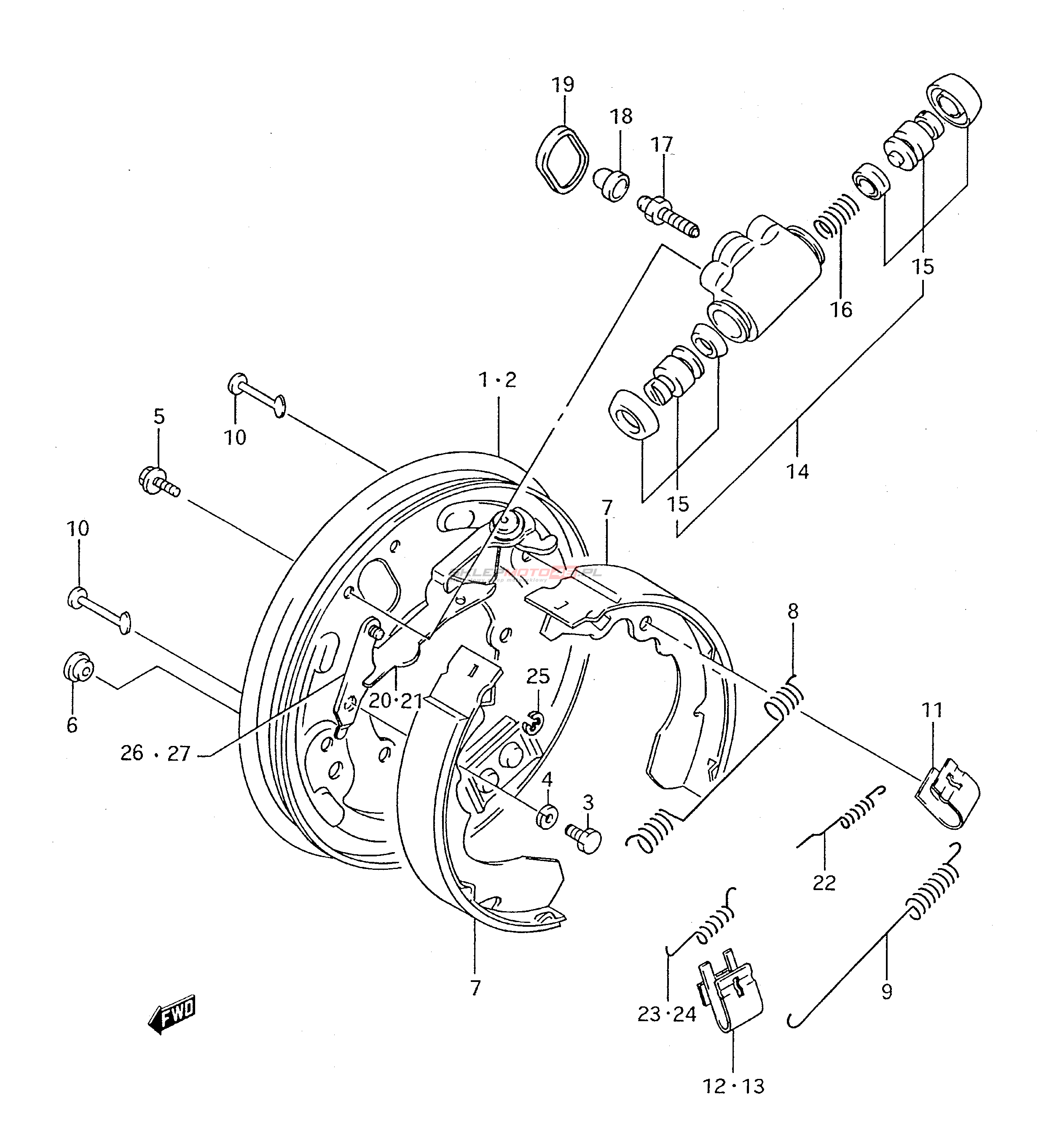 Wszystkie części widoczne na fiszkach to oryginalne części OEM Suzuki.