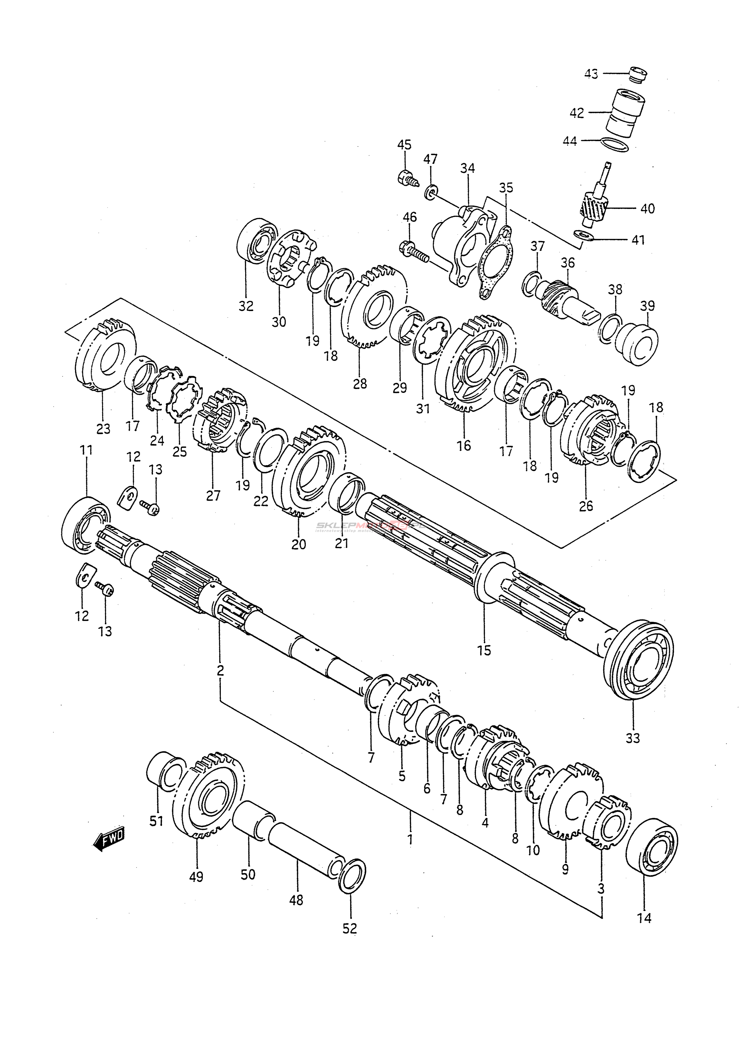 Wszystkie części widoczne na fiszkach to oryginalne części OEM Suzuki.