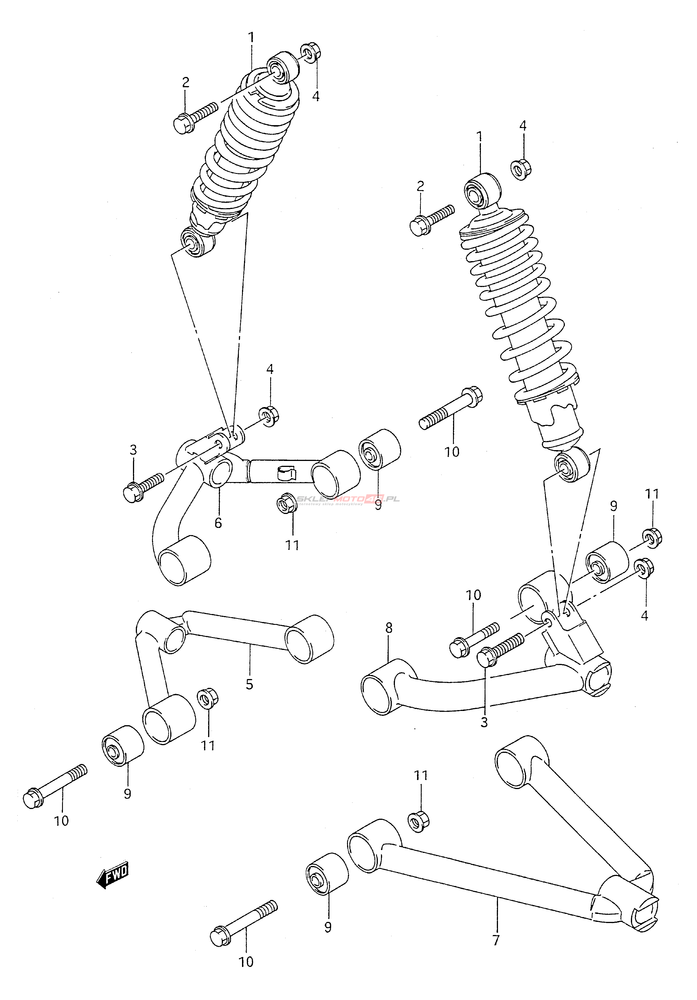 Wszystkie części widoczne na fiszkach to oryginalne części OEM Suzuki.