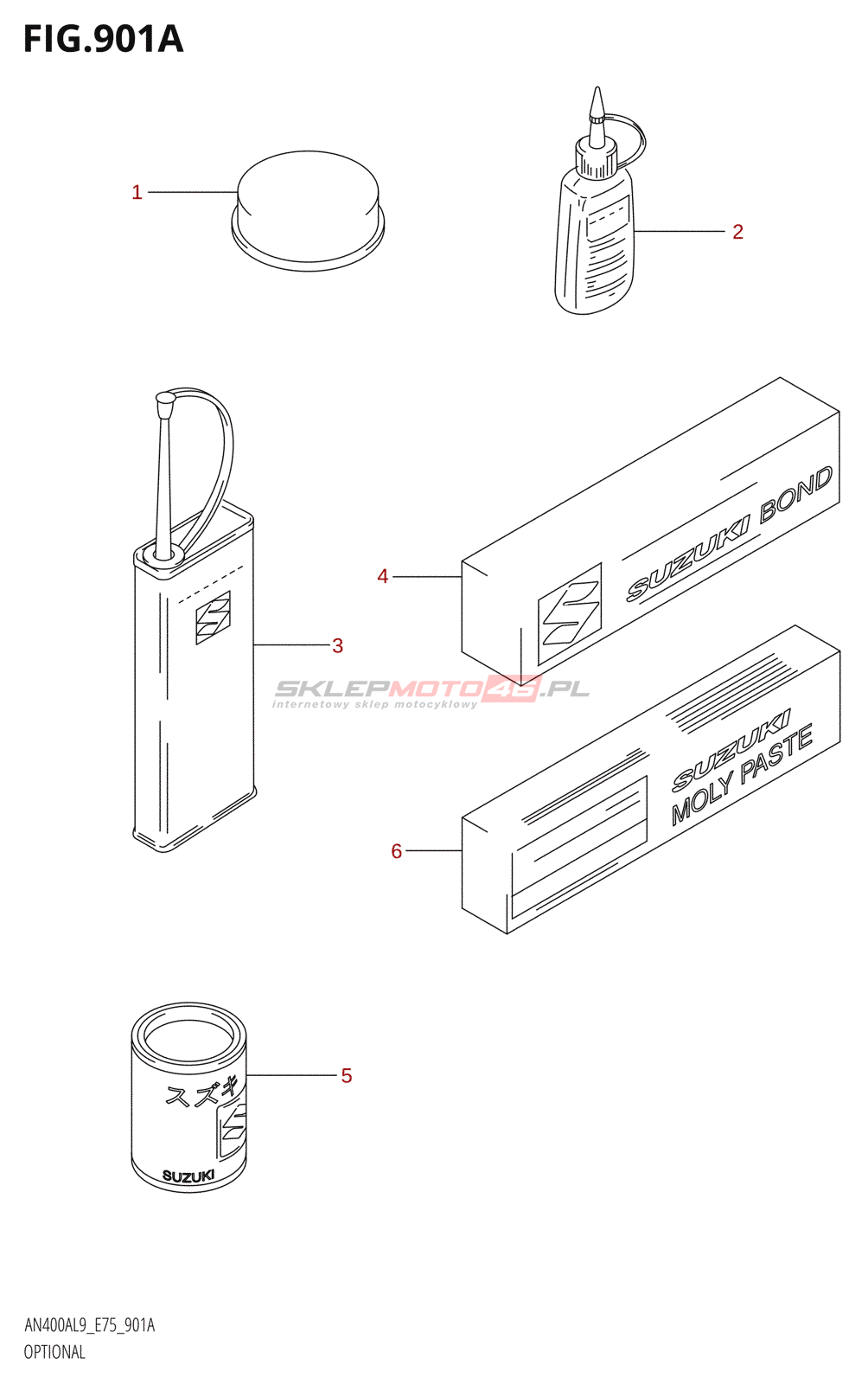 Wszystkie części widoczne na fiszkach to oryginalne części OEM Suzuki.