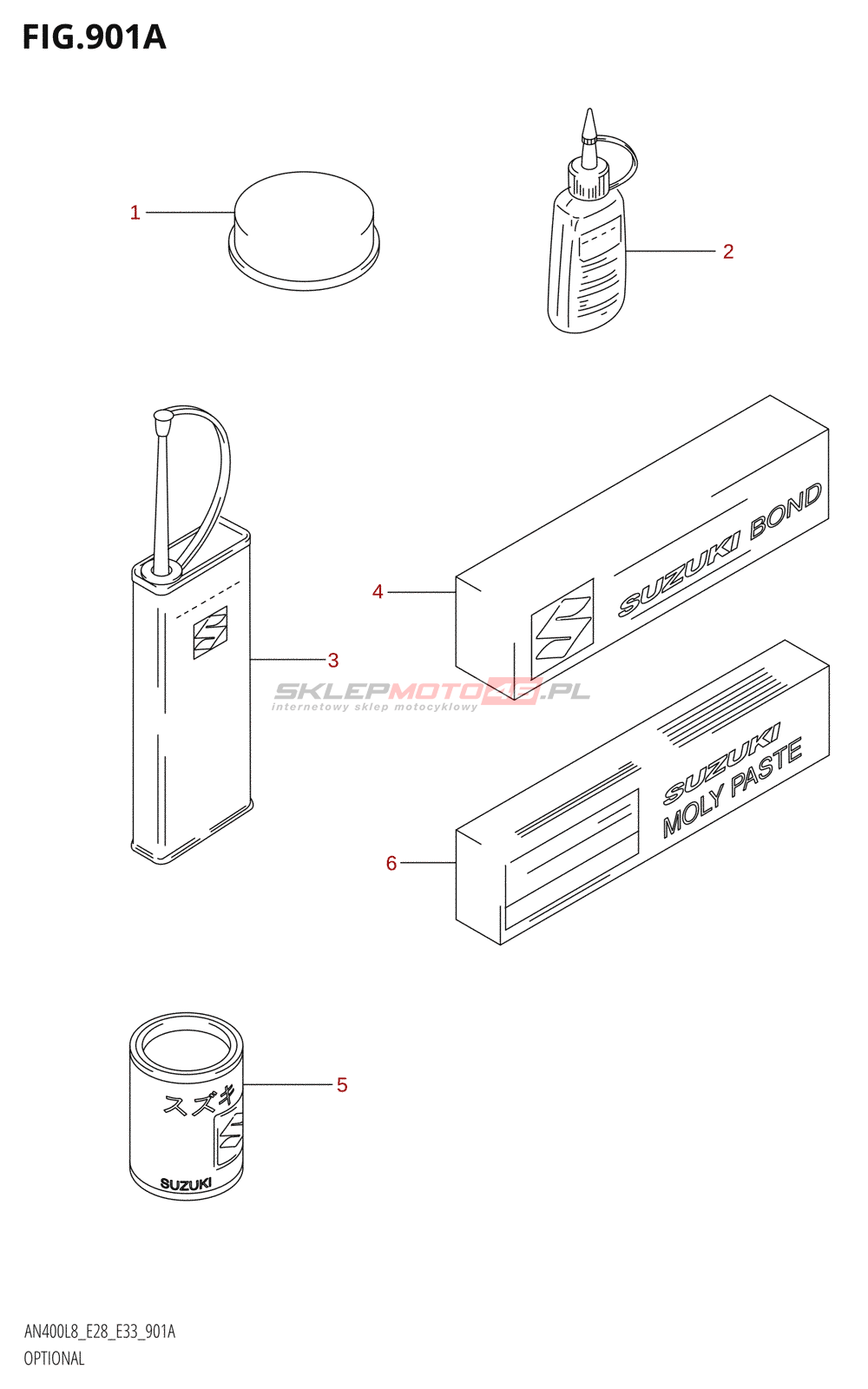 Wszystkie części widoczne na fiszkach to oryginalne części OEM Suzuki.