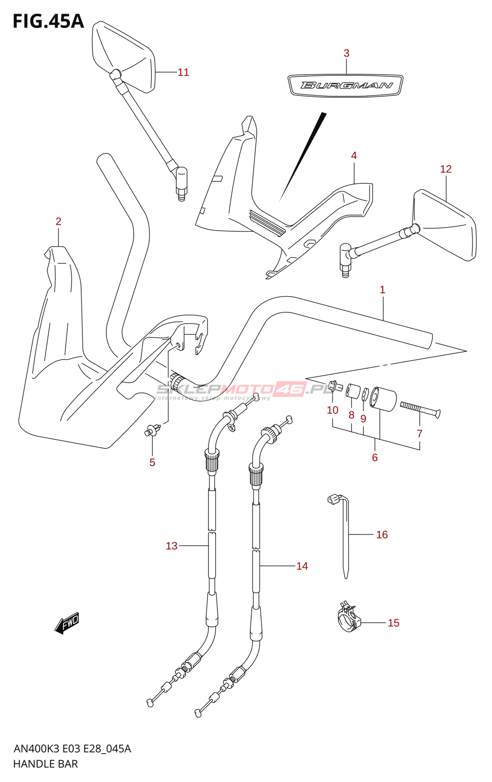 45A - HANDLEBAR (MODEL K4,AN400K5 /​ K6)
