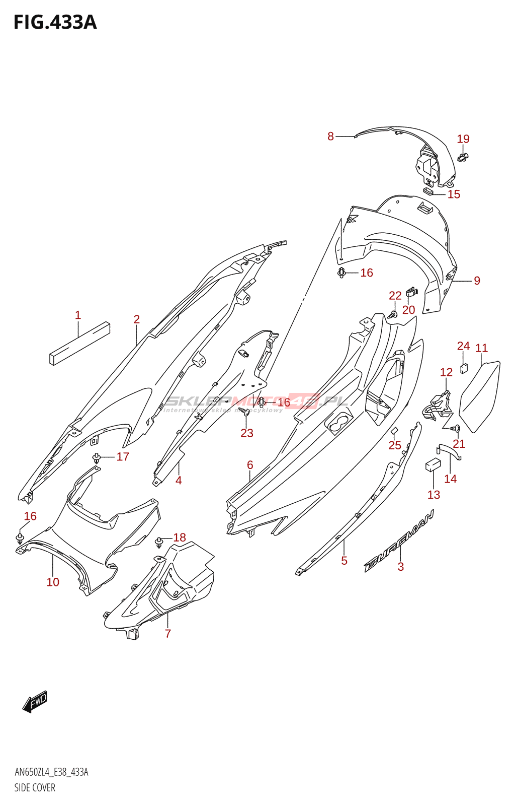 Wyszukiwarka części Suzuki AN650Z 2014 L4 (E38) 40 - Body