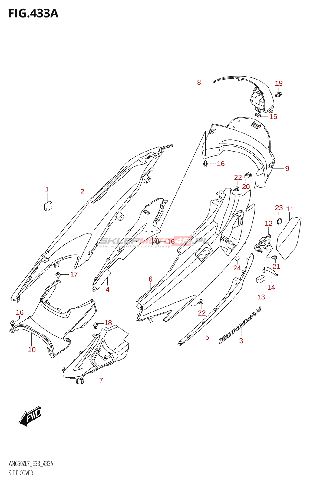 Wyszukiwarka części Suzuki AN650Z 2017 L7 (E38) 40 - Body