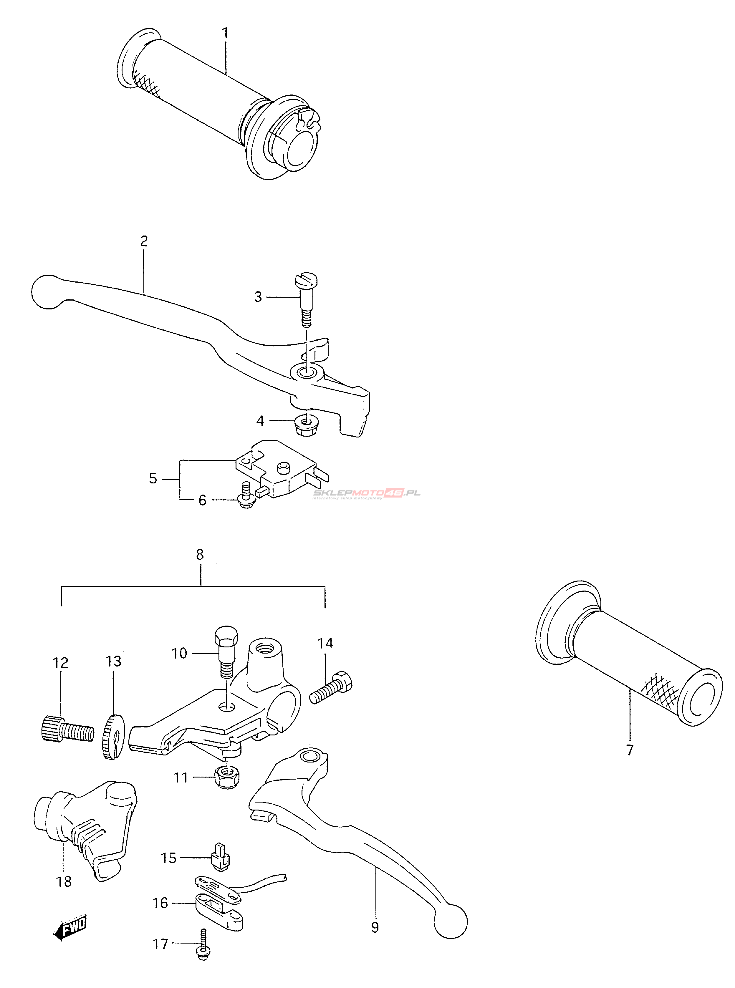 Wszystkie części widoczne na fiszkach to oryginalne części OEM Suzuki.