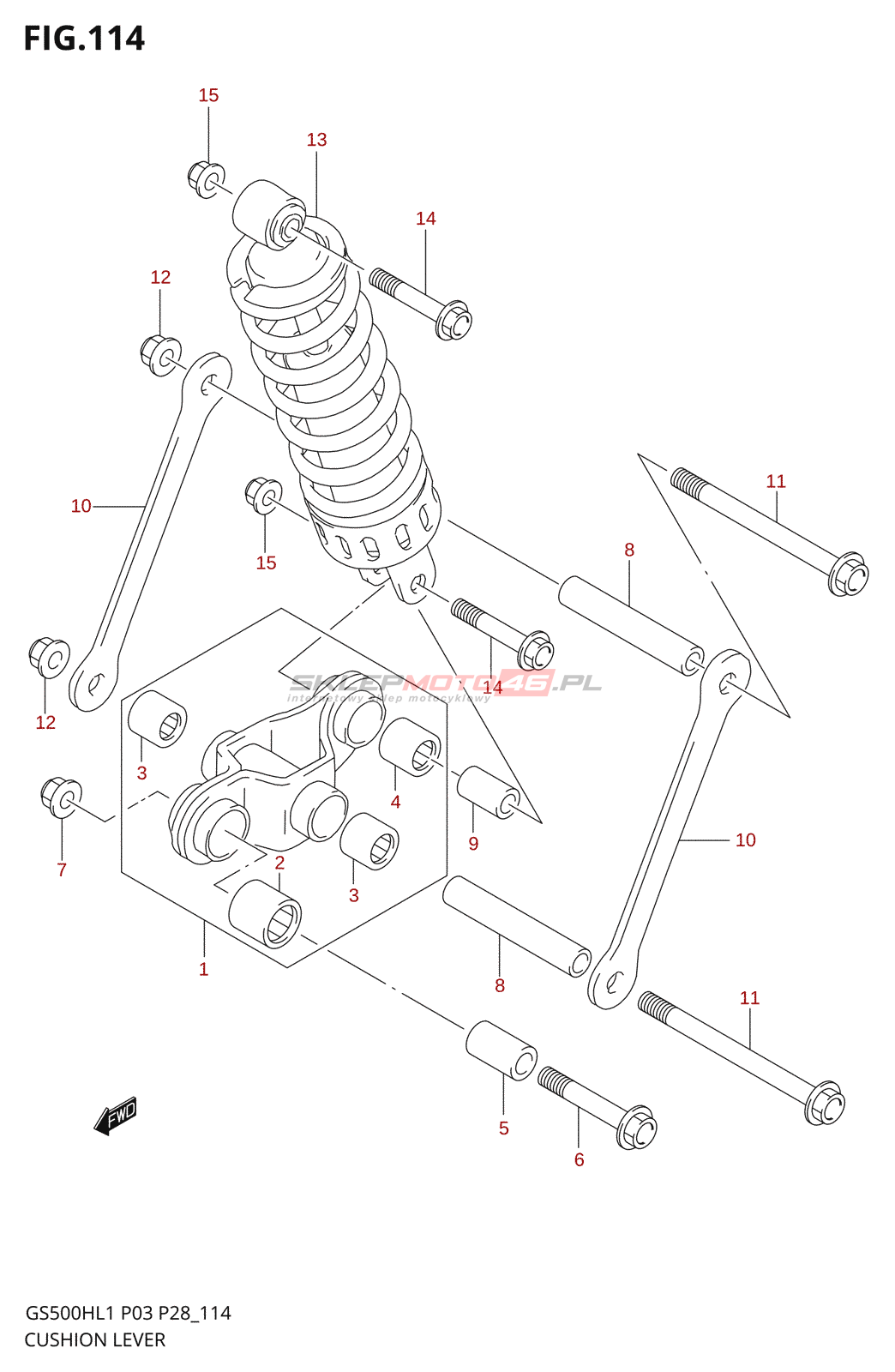 Wszystkie części widoczne na fiszkach to oryginalne części OEM Suzuki.