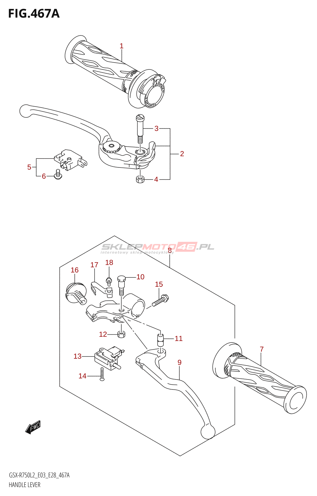 Wszystkie części widoczne na fiszkach to oryginalne części OEM Suzuki.
