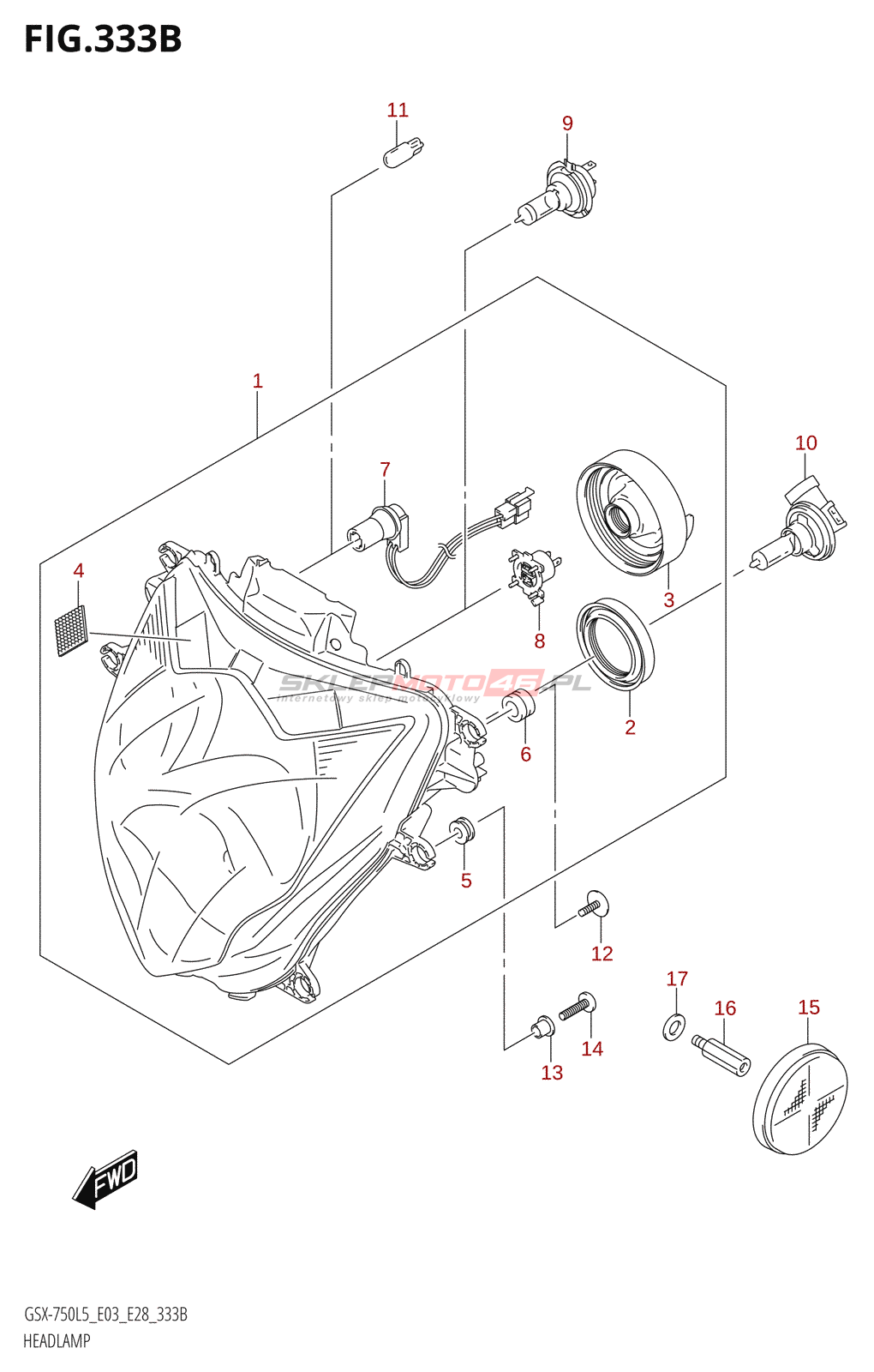 333B - HEADLAMP (GSX-R750L5 E28)