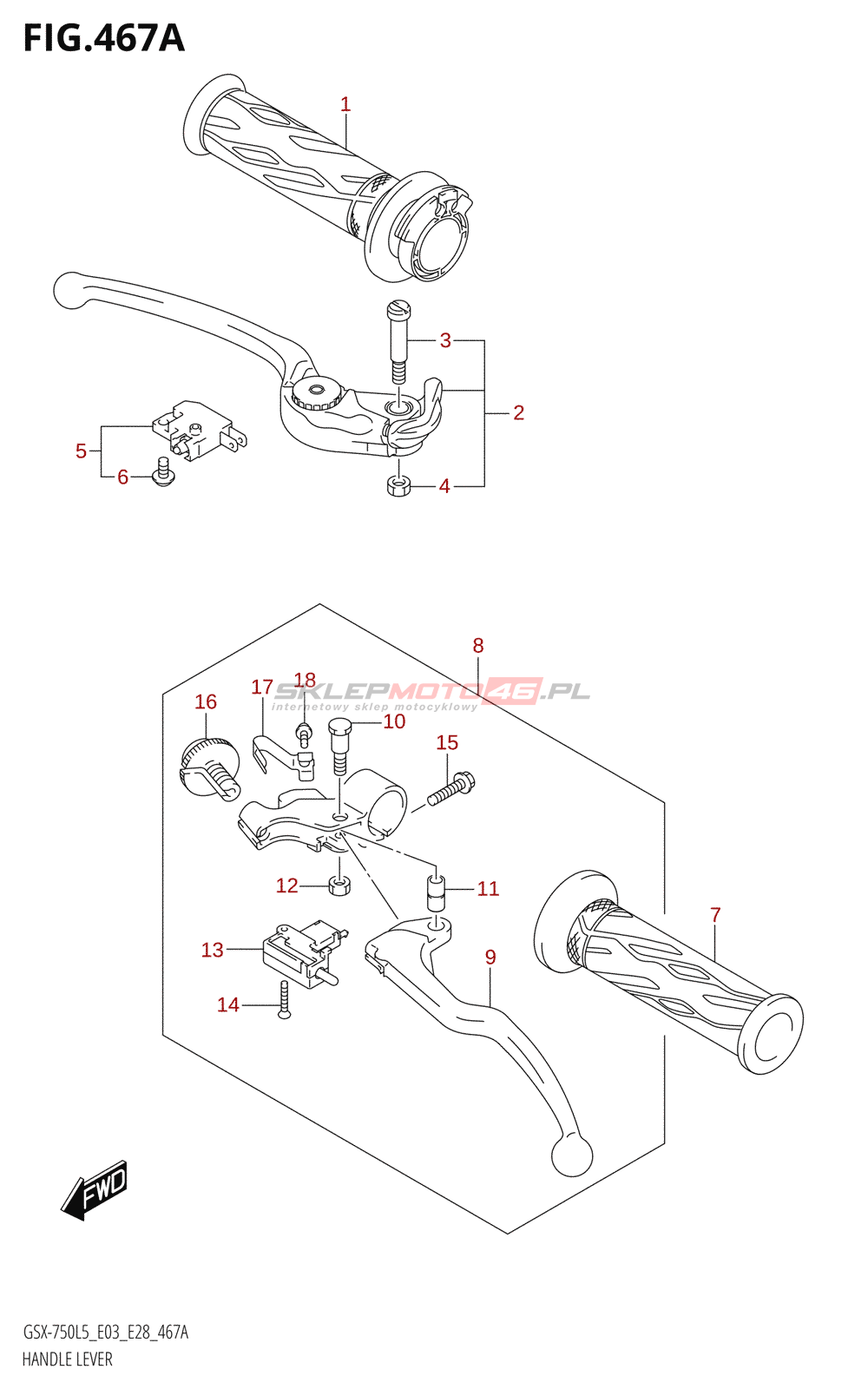 Wszystkie części widoczne na fiszkach to oryginalne części OEM Suzuki.
