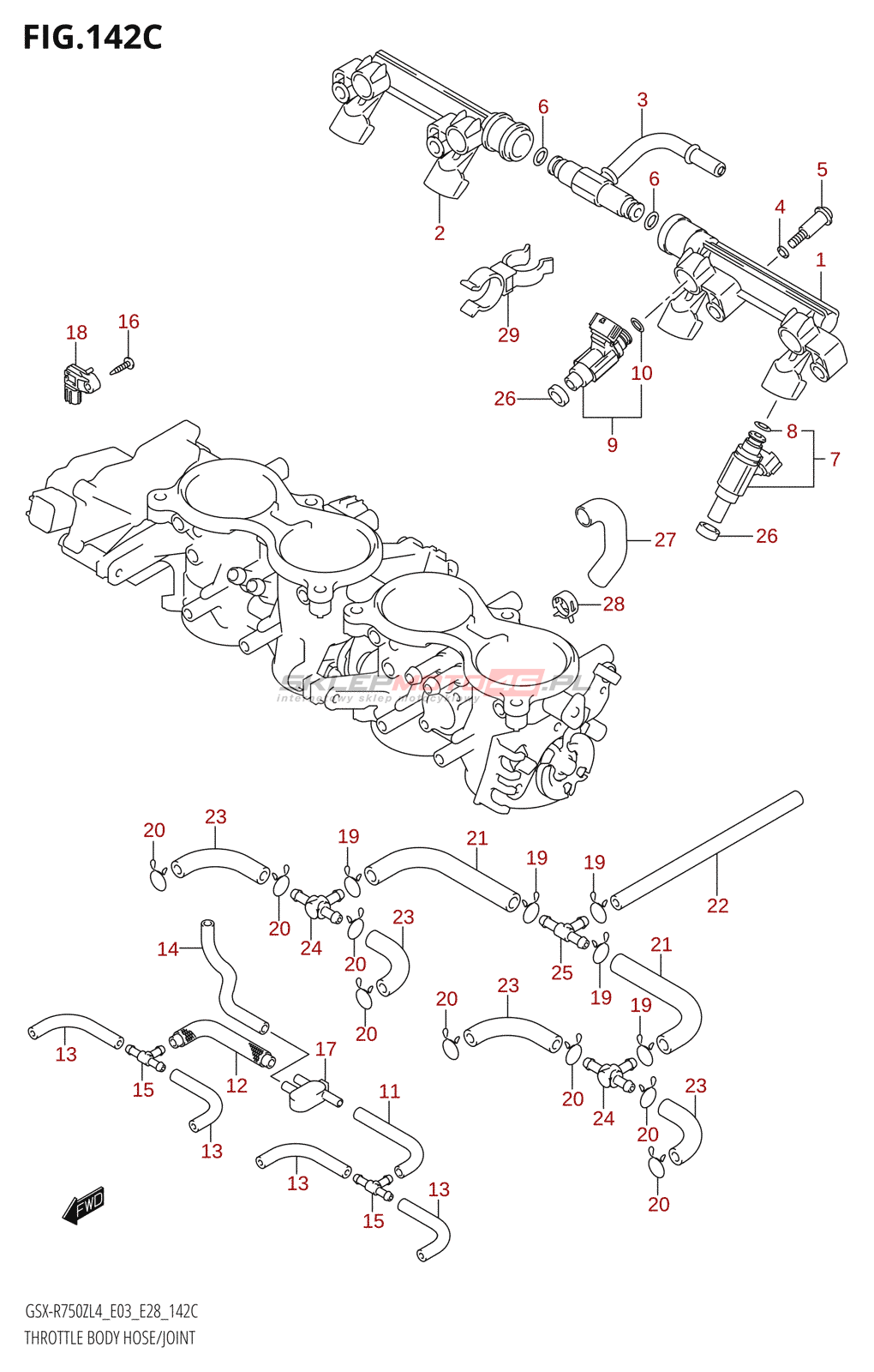 142C - THROTTLE BODY HOSE /​ JOINT (GSX-R750Z:L4:E33)