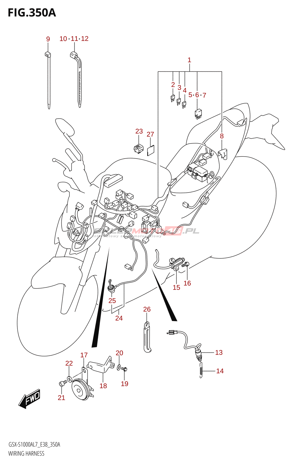 Wszystkie części widoczne na fiszkach to oryginalne części OEM Suzuki.