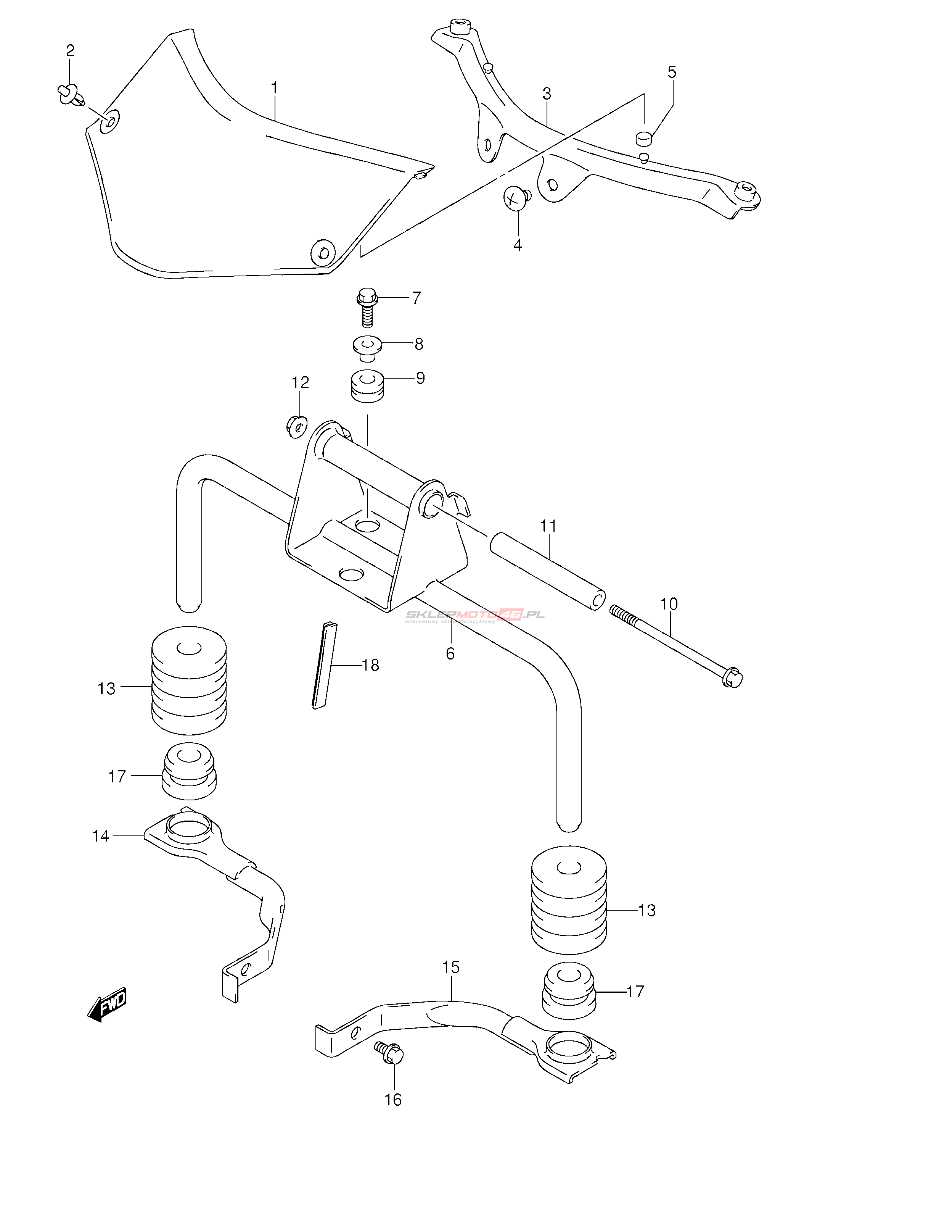 Wszystkie części widoczne na fiszkach to oryginalne części OEM Suzuki.