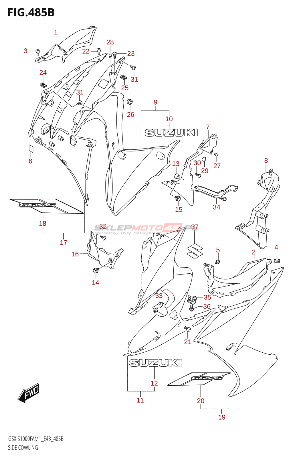 Wszystkie części widoczne na fiszkach to oryginalne części OEM Suzuki.