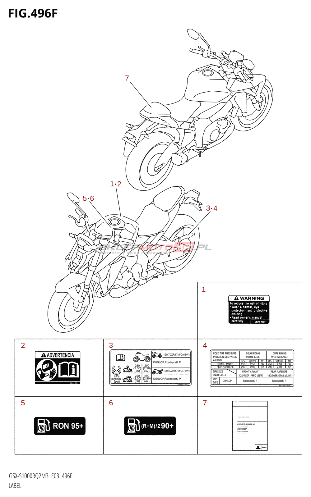 Wszystkie części widoczne na fiszkach to oryginalne części OEM Suzuki.
