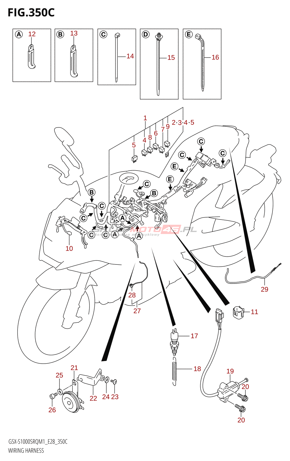 Wszystkie części widoczne na fiszkach to oryginalne części OEM Suzuki.