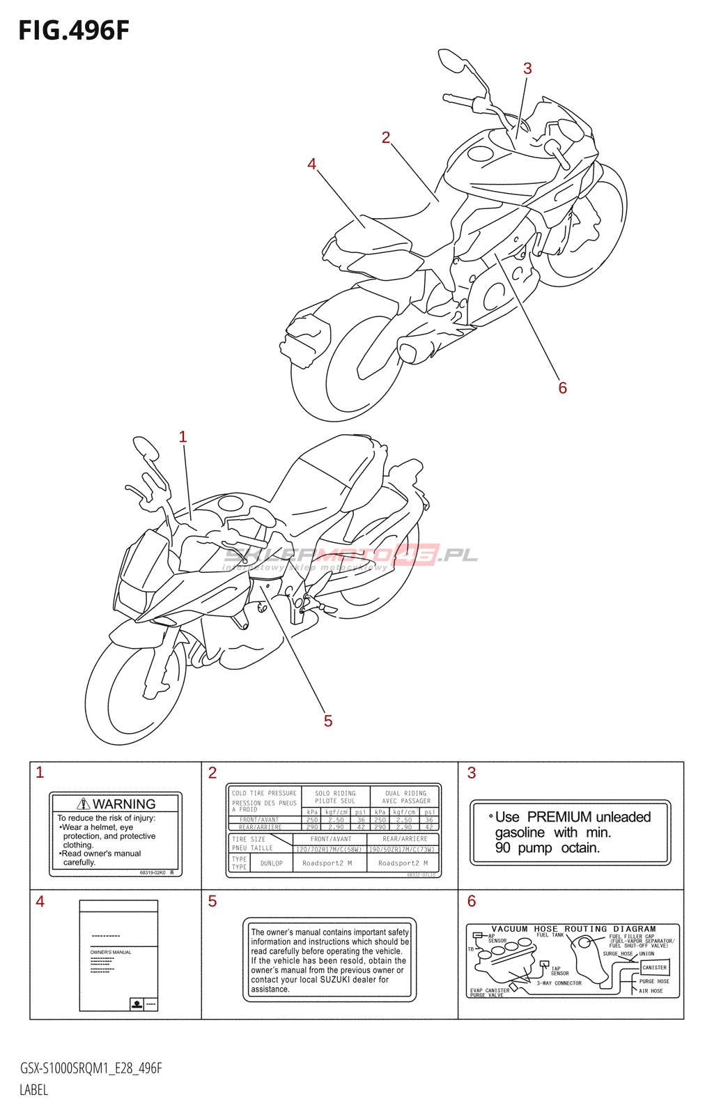 Wszystkie części widoczne na fiszkach to oryginalne części OEM Suzuki.