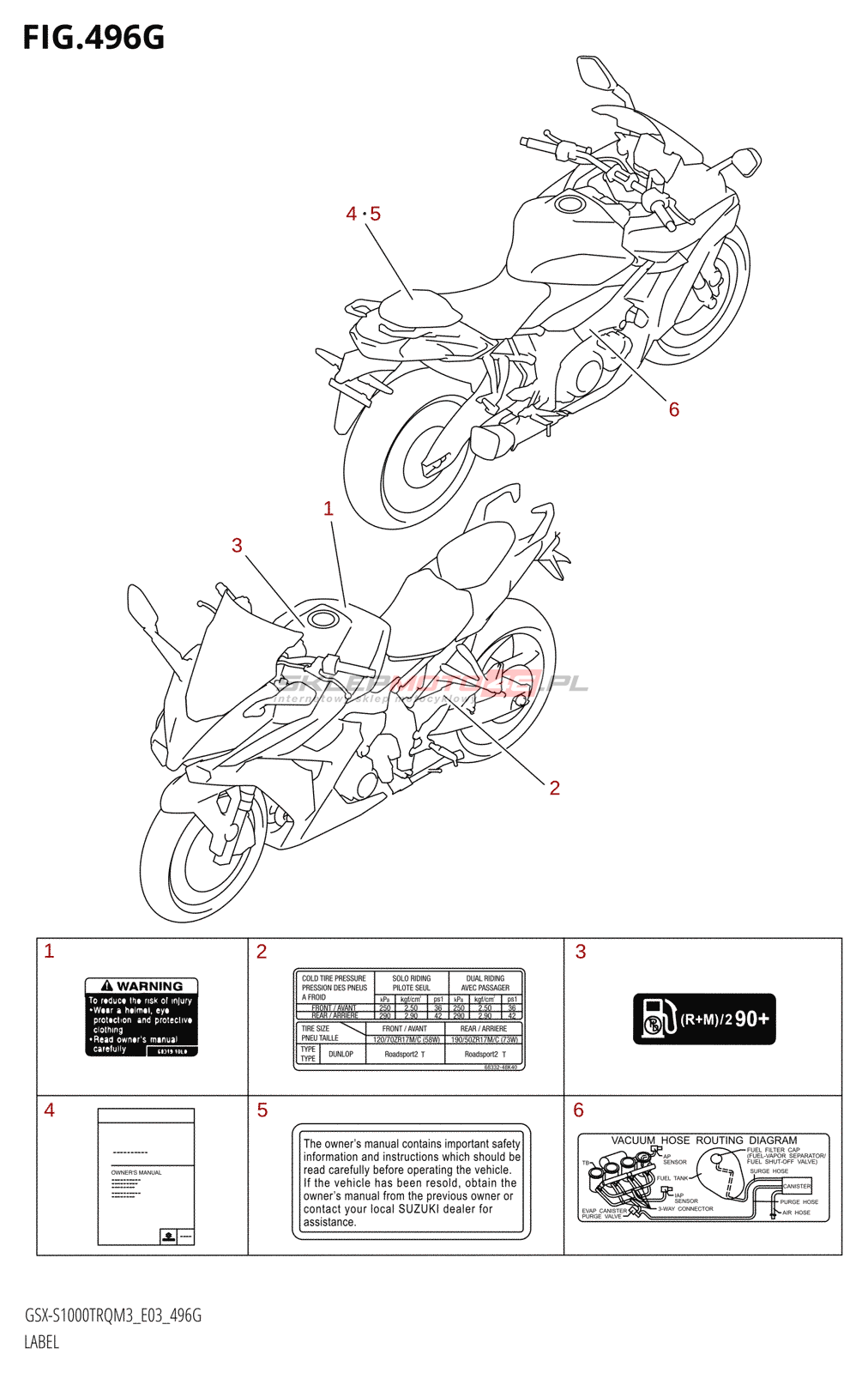 Wszystkie części widoczne na fiszkach to oryginalne części OEM Suzuki.