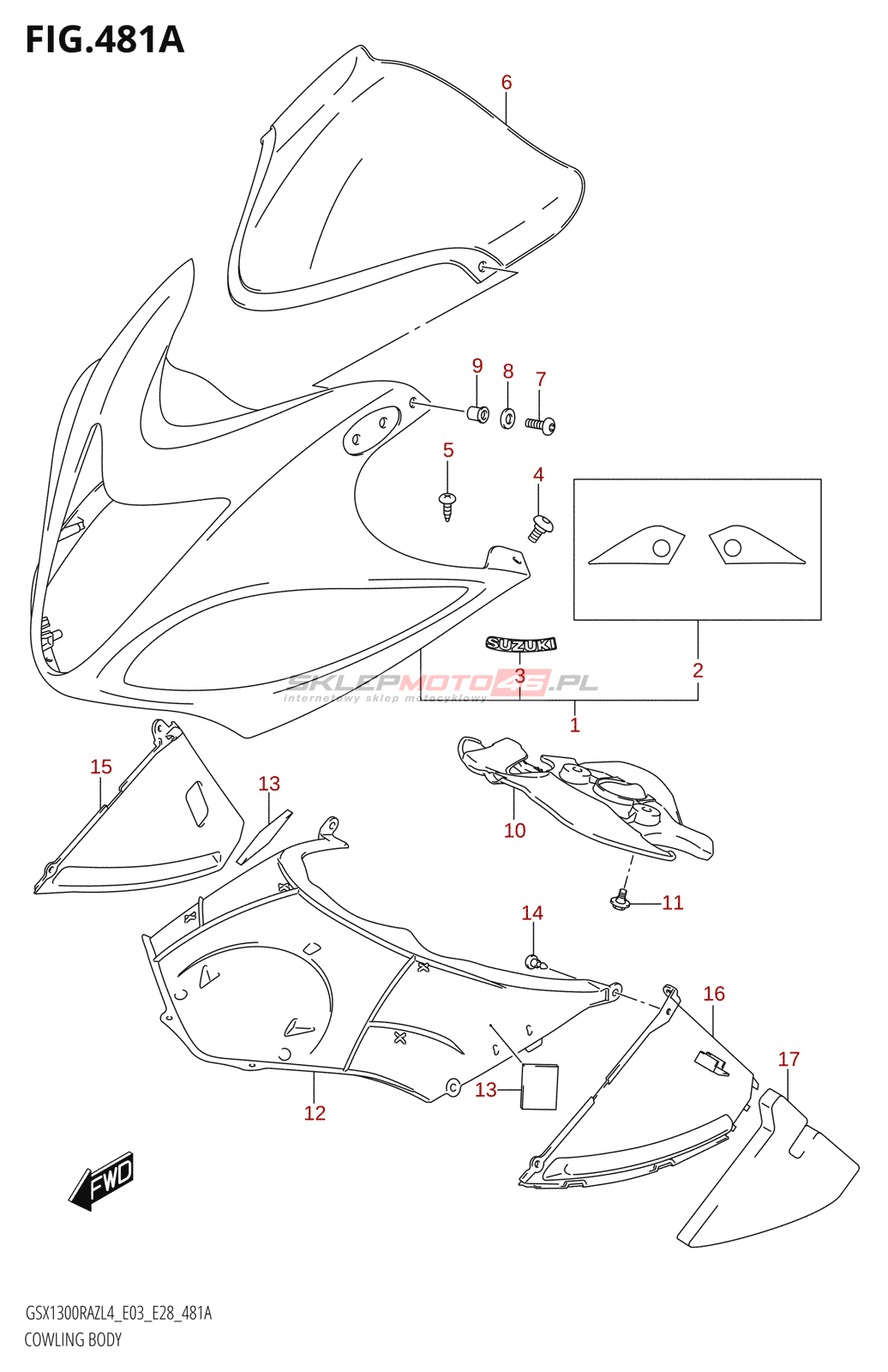 Wszystkie części widoczne na fiszkach to oryginalne części OEM Suzuki.