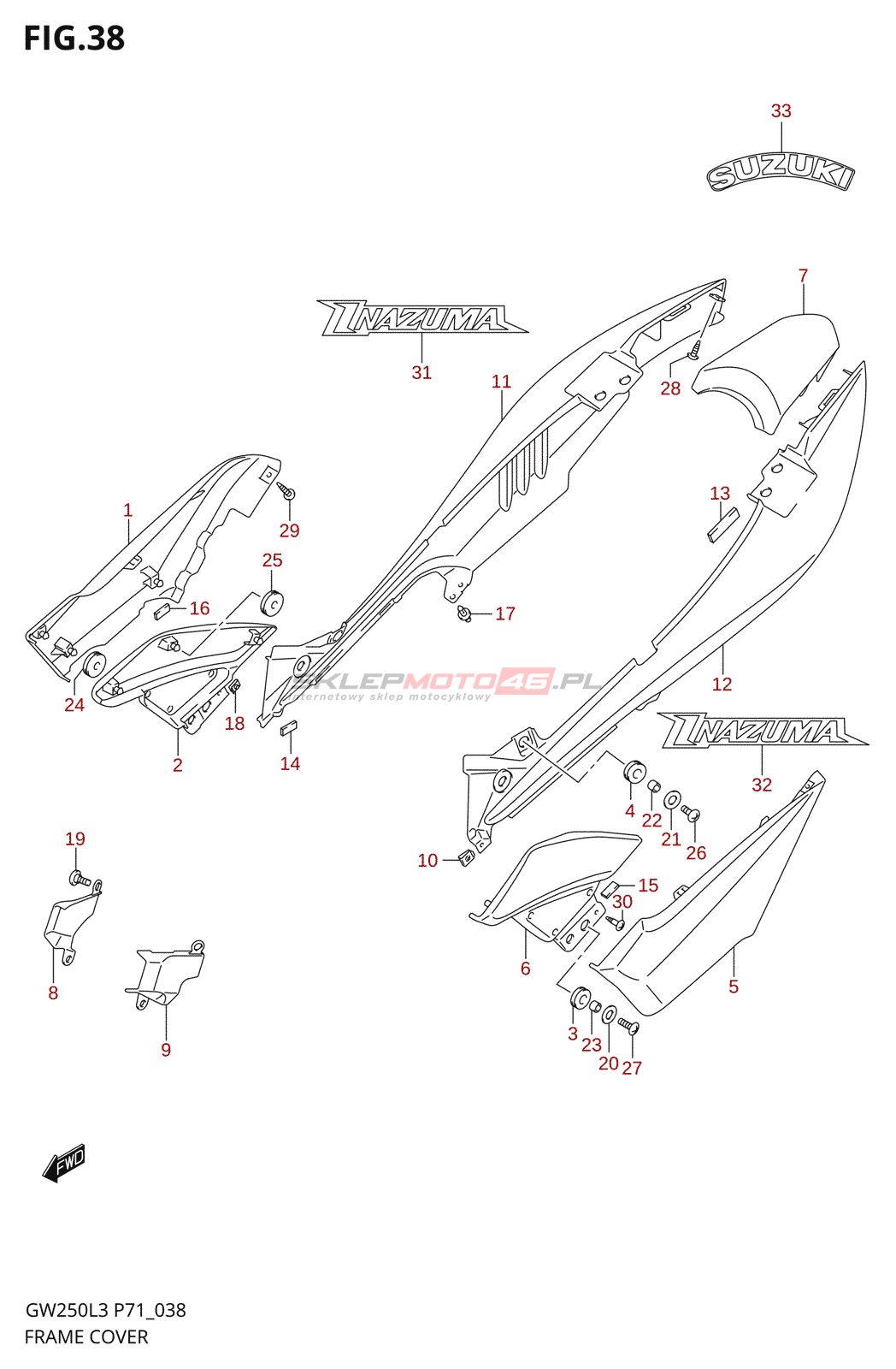 Wyszukiwarka części Suzuki GW250 L3 (P71) Body /​ Frame