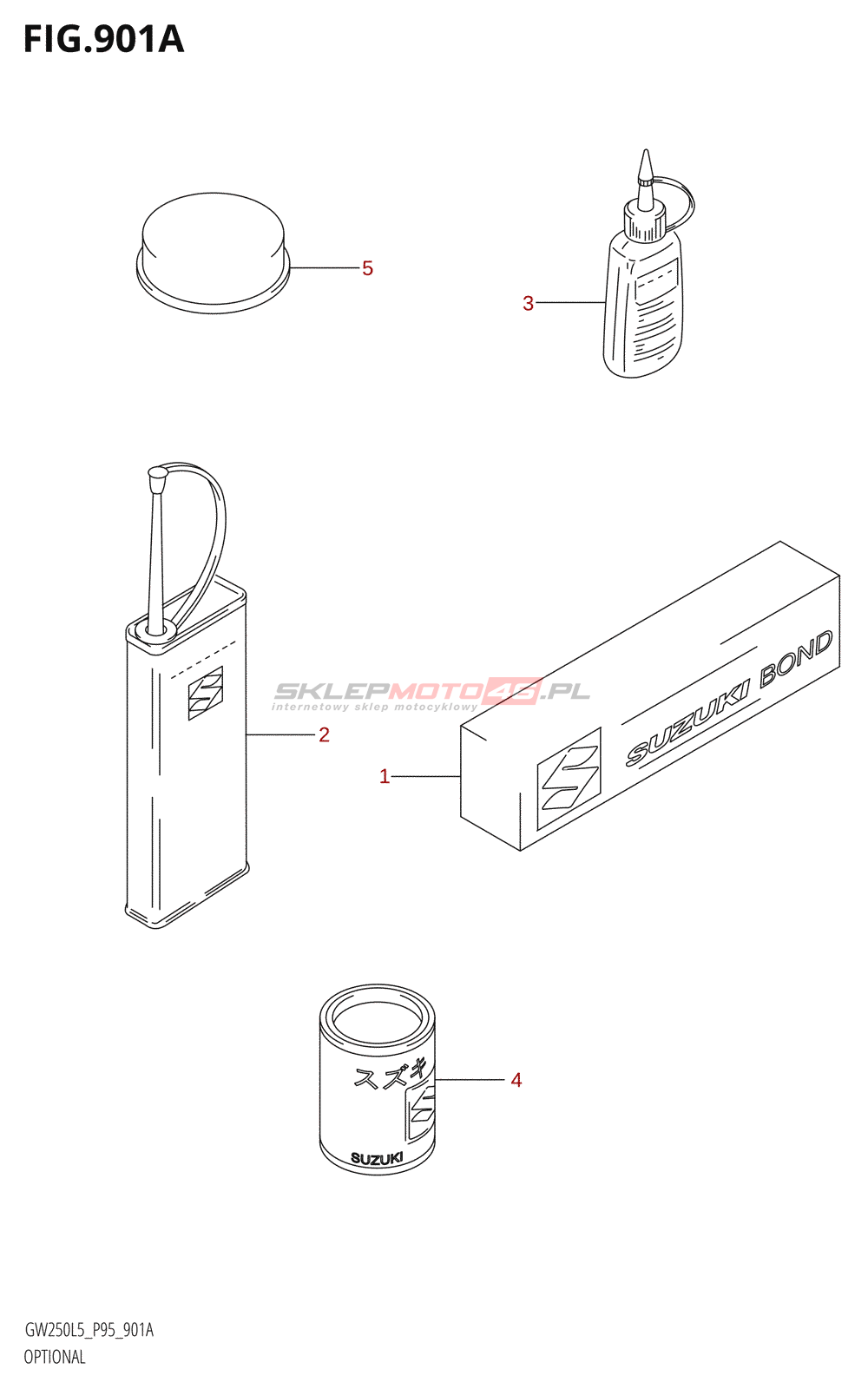 Wszystkie części widoczne na fiszkach to oryginalne części OEM Suzuki.
