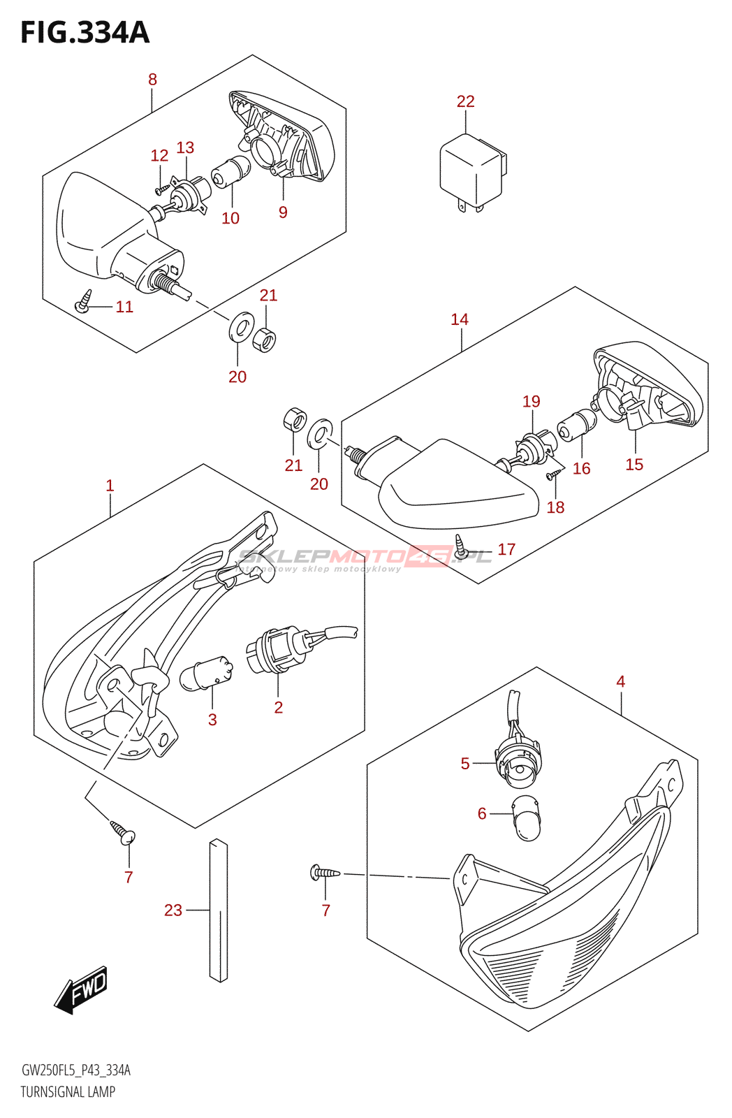 Wszystkie części widoczne na fiszkach to oryginalne części OEM Suzuki.