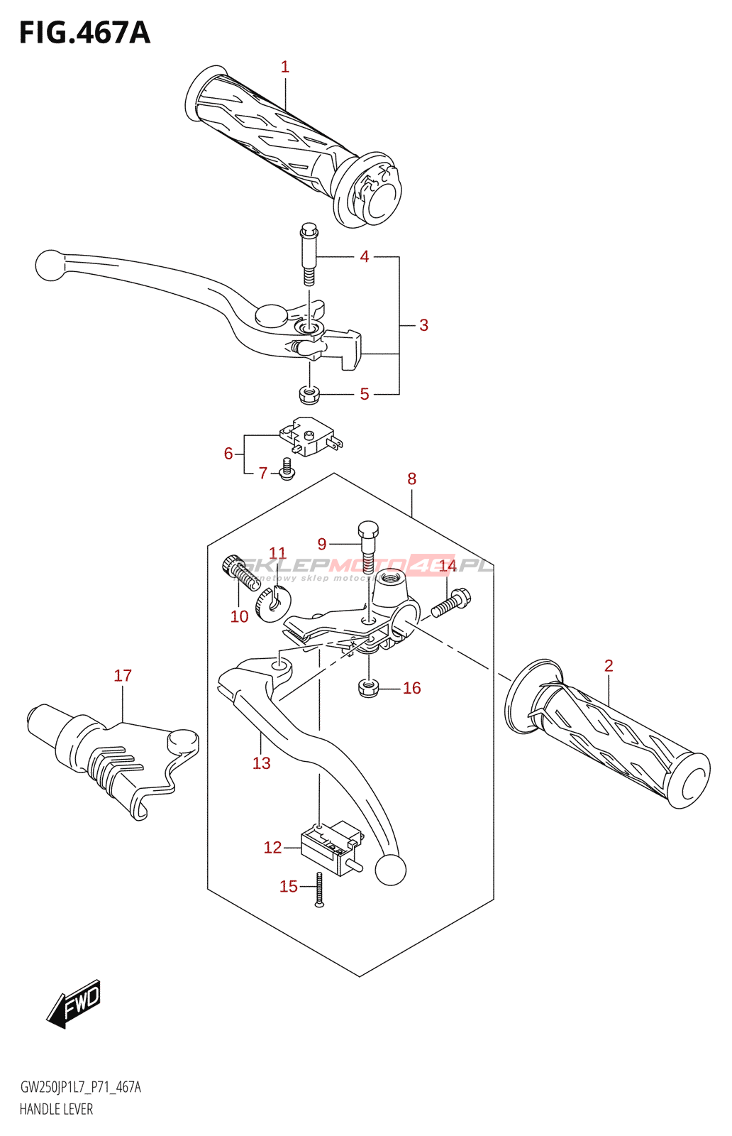 Wszystkie części widoczne na fiszkach to oryginalne części OEM Suzuki.