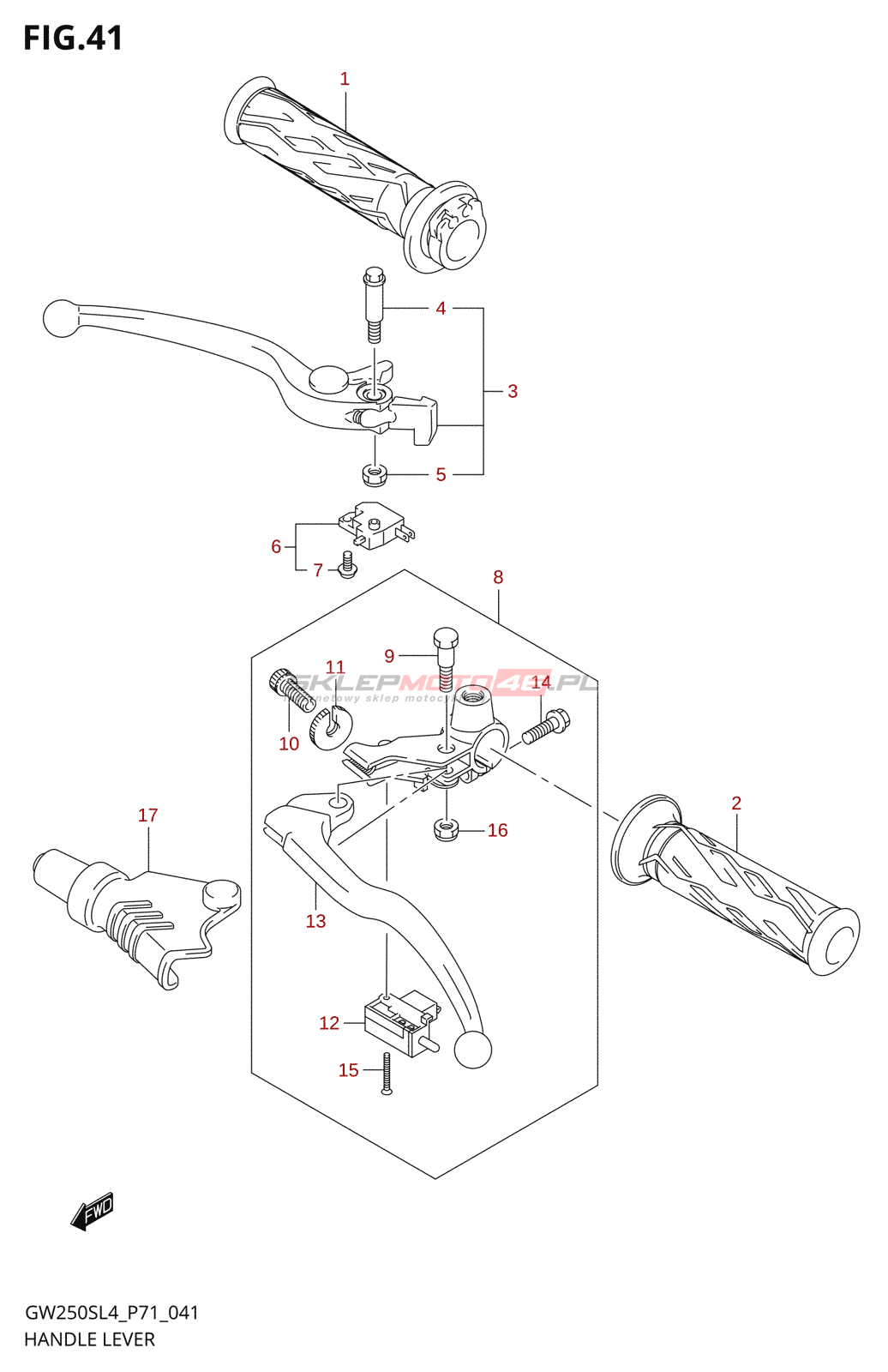 Wszystkie części widoczne na fiszkach to oryginalne części OEM Suzuki.