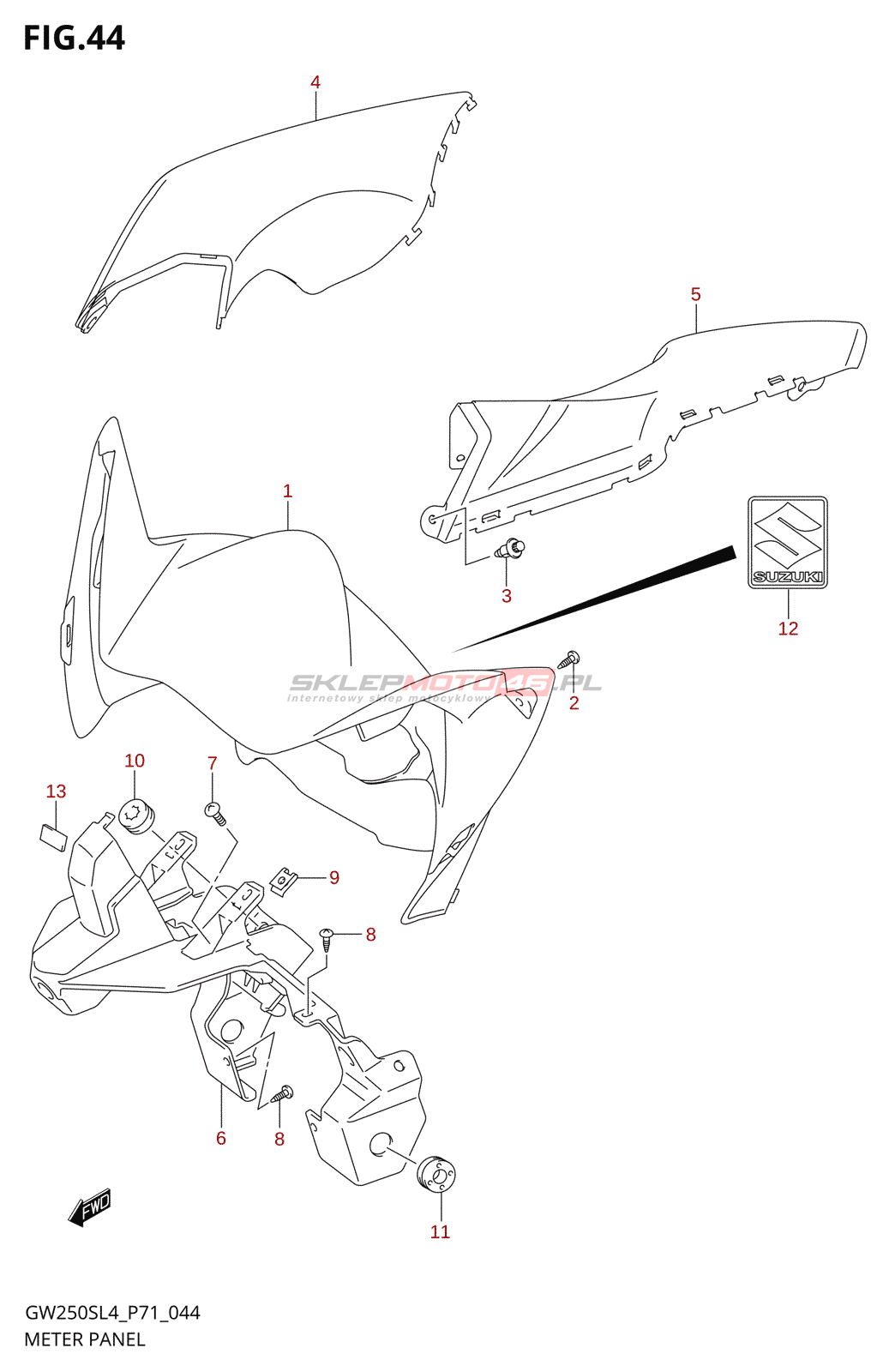 Wszystkie części widoczne na fiszkach to oryginalne części OEM Suzuki.