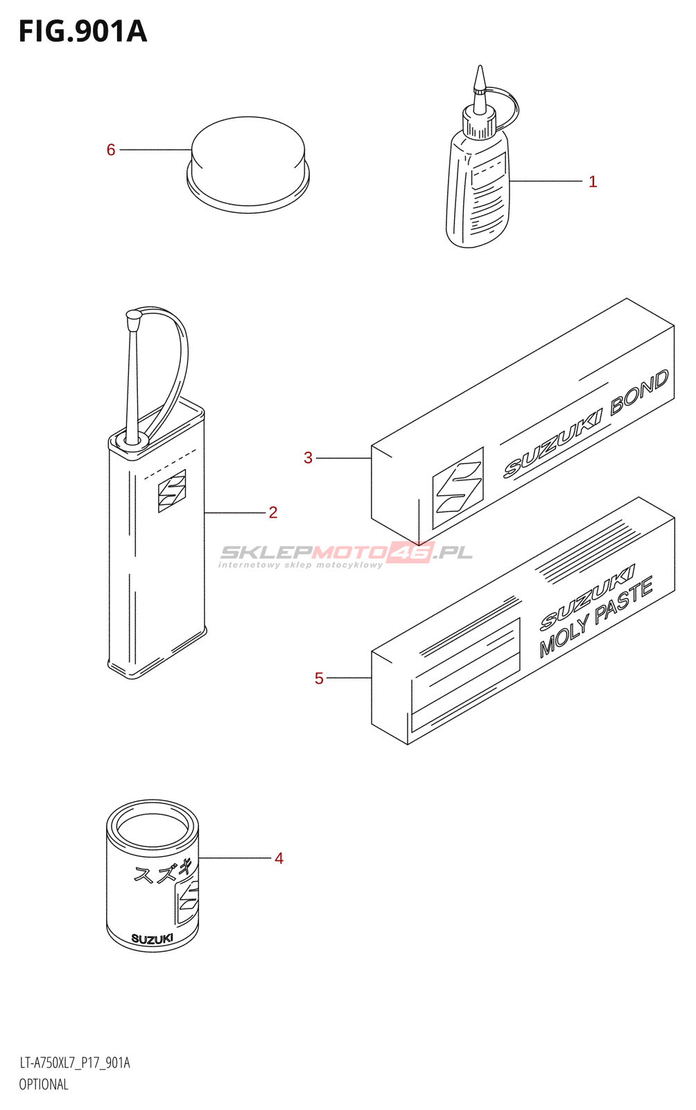 Wszystkie części widoczne na fiszkach to oryginalne części OEM Suzuki.