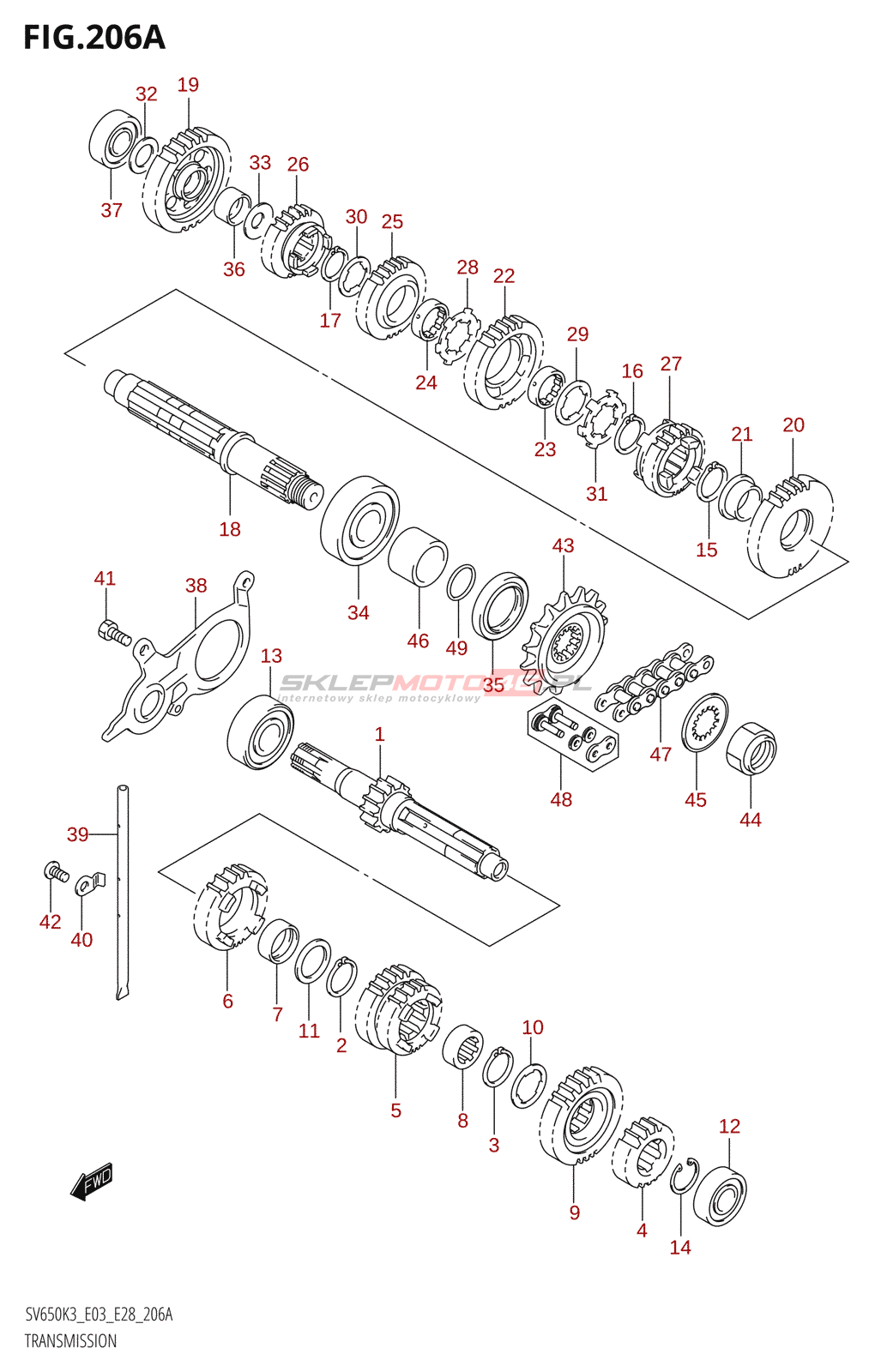 Wyszukiwarka części Suzuki SV650S 2003 K3 (E03) 20 - Transmission