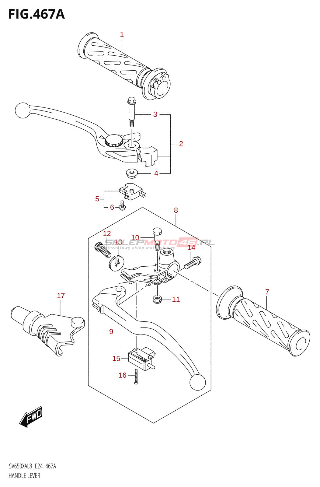 Wszystkie części widoczne na fiszkach to oryginalne części OEM Suzuki.